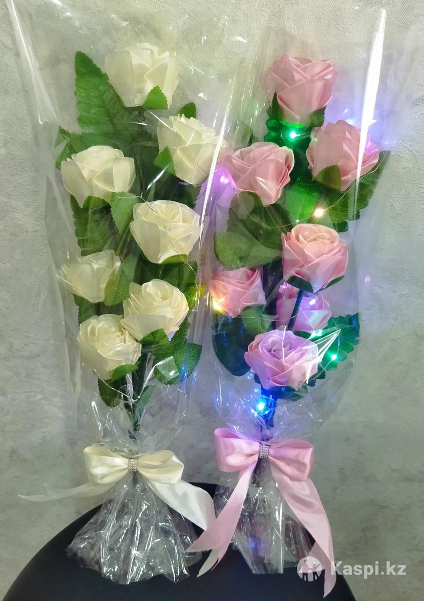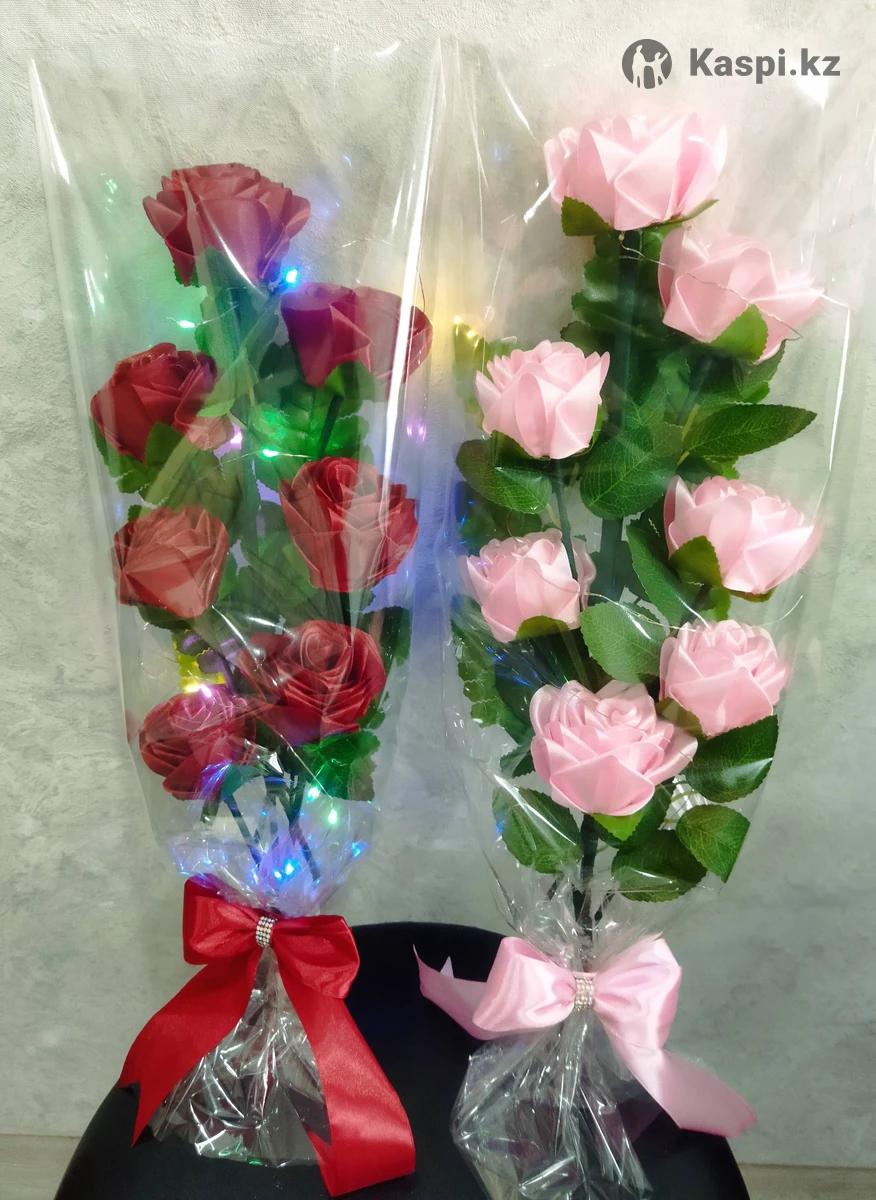 Продам букеты из роз ручной работы из атласных лент. Во внутрь вложена светящаяся гирлянда