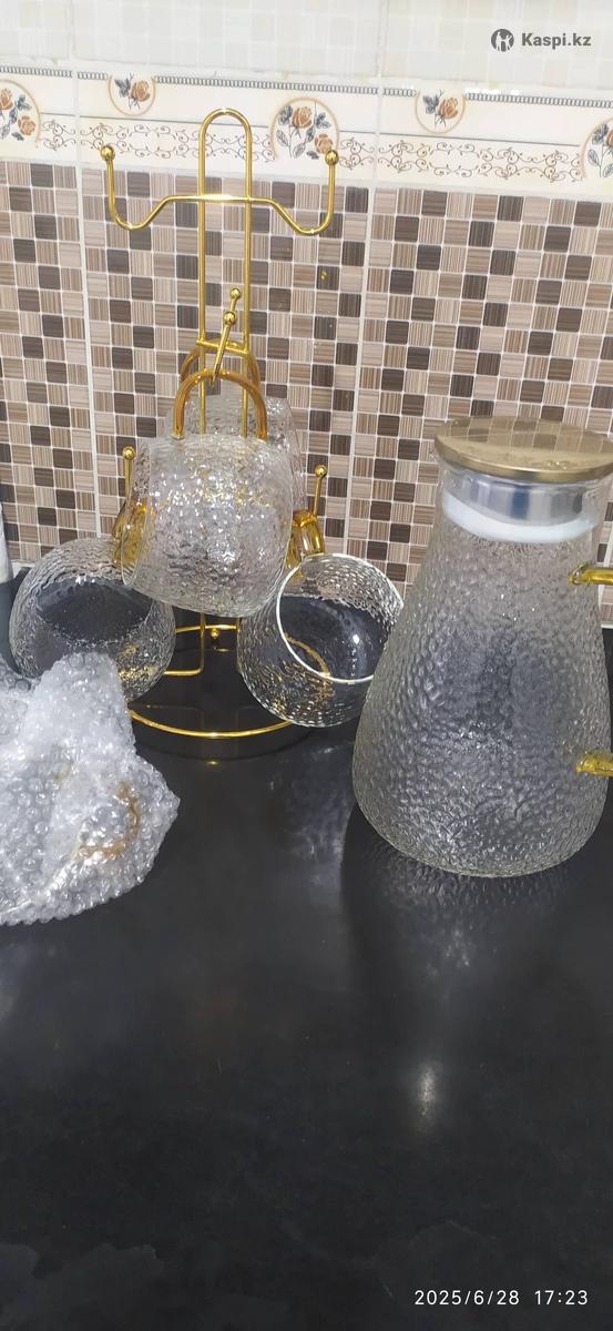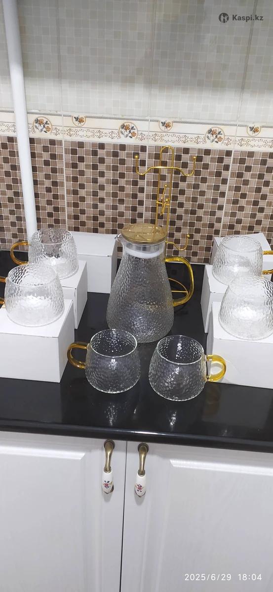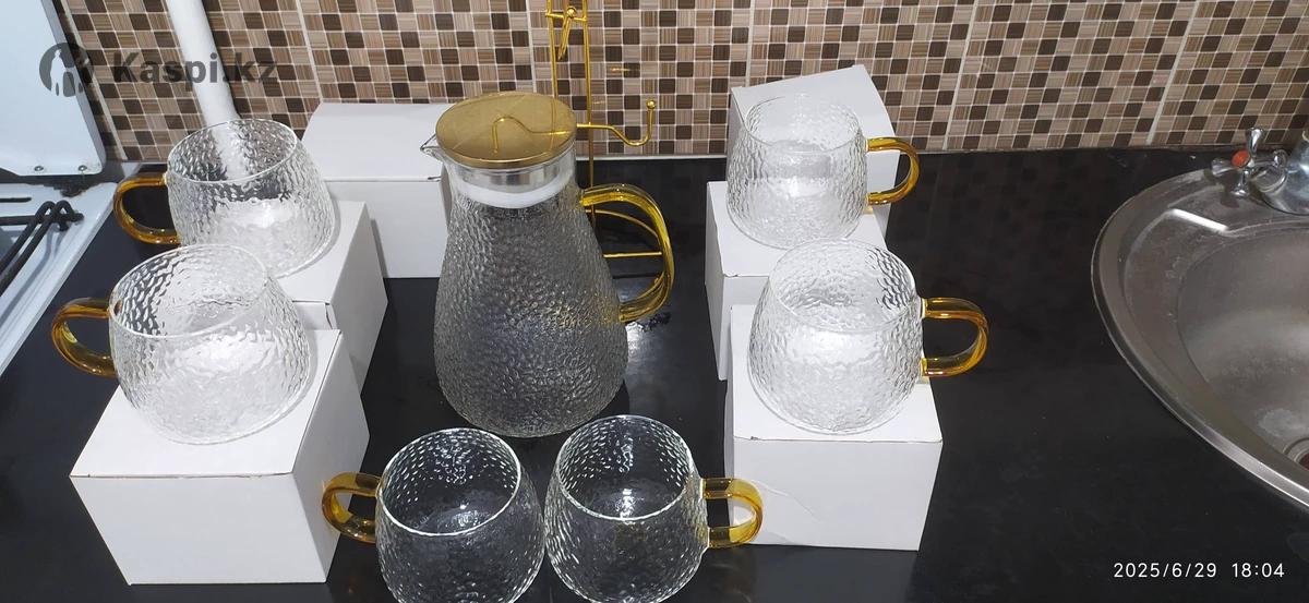 Продам набор графин с кружками + подставка под кружек, новый, кружек 6, жаропрочный.Отлично подойдет на подарок, отдам за 5000 тг.на Каспи , озоне намного дороже, все упаковано с коробкой идеальный подарок как для себя, так и близкому.