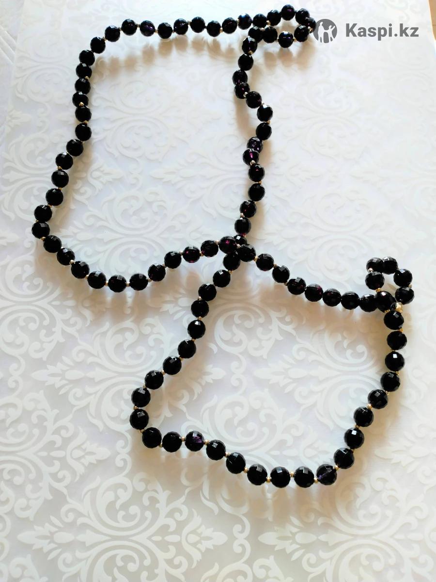 Продам черные граненые бусы из имитации черного агата. Длина: 110 см. Диаметр одного камня: 1 см. Магазин Интерфуд Кошкарбаева 8.