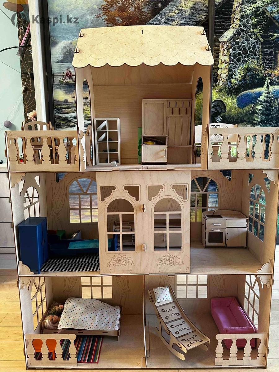 Продам деревянный игрушечный дом в идеальном состоянии - отличный подарок для ребенка! 3 этажа, 5 просторных комнат, 2 балкона и крыша. Можно легко раскрасить красками на свой вкус или вкус ребенка. В комплекте идет качественная деревянная мебель. Дом прочный. Легко разбирается и собирается.