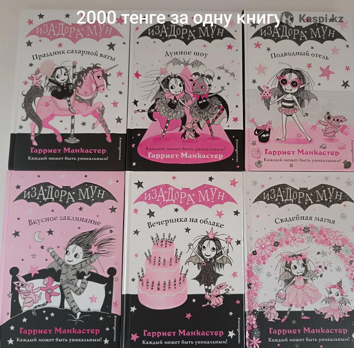 Продам детские книги б/у, в отличном состоянии. Цена за одну книгу 2000 тенге.Город Костанай. Возраст: 6+. «Изадора Мун» — популярная серия иллюстрированных детских книг Гарриет Манкастер о приключениях девочки, наполовину феи и наполовину вампира. Изадора обожает розовый и чёрный цвета, дружит с розовым кроликом и учится принимать свою уникальность, посещая школу. Жанр: Детское фэнтези, приключения, сказочная повесть. Целевая аудитория: Дети младшего школьного возраста (обычно 5-9 лет). Стиль: Добрые, весёлые истории с уникальными авторскими иллюстрациями, выполненными в розовых, чёрных и белых тонах. Основные сюжетные линии: Изадора разрывается между миром фей (мама) и вампиров (папа), стараясь совмещать полёты, магию и обычные школьные проблемы. Книги учат детей быть собой, дружить и находить волшебство в повседневной жизни.
