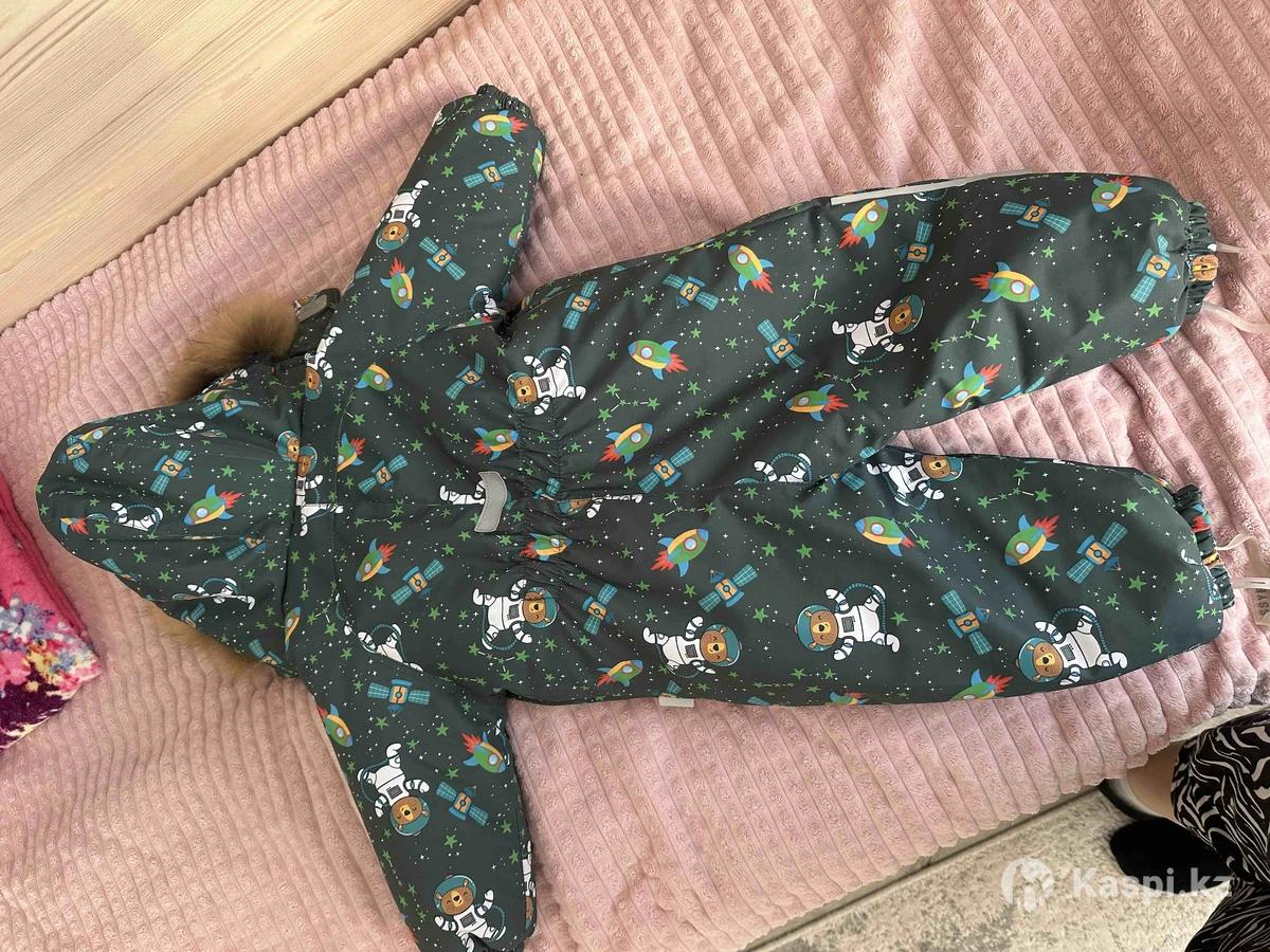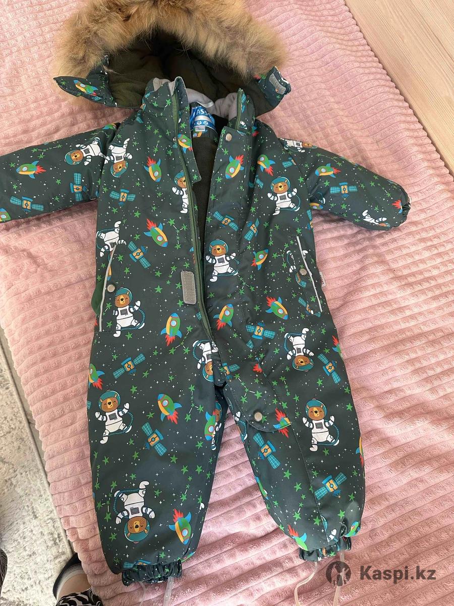 Новое, в идеальном состоянии. Маленькое нам. Цвет зеленый очень сочный красивый цвет, размер 86. Фирма Lassyе. Внизу с резинками чтобы держать обувь. Очень теплое.
