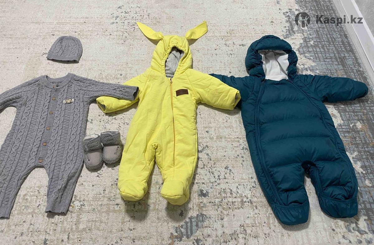 Продам: Желтый комбинезон на весну-осень ростовка 74( подойдет с рождения до 10 мес., может до года в зависимости от телосложения) Изумрудный комбинезон на теплую зиму(подойдет с рождения до 10 мес., может до года в зависимости от телосложения) Вязанный ромпер и обувь Все отдам за 7 тыс