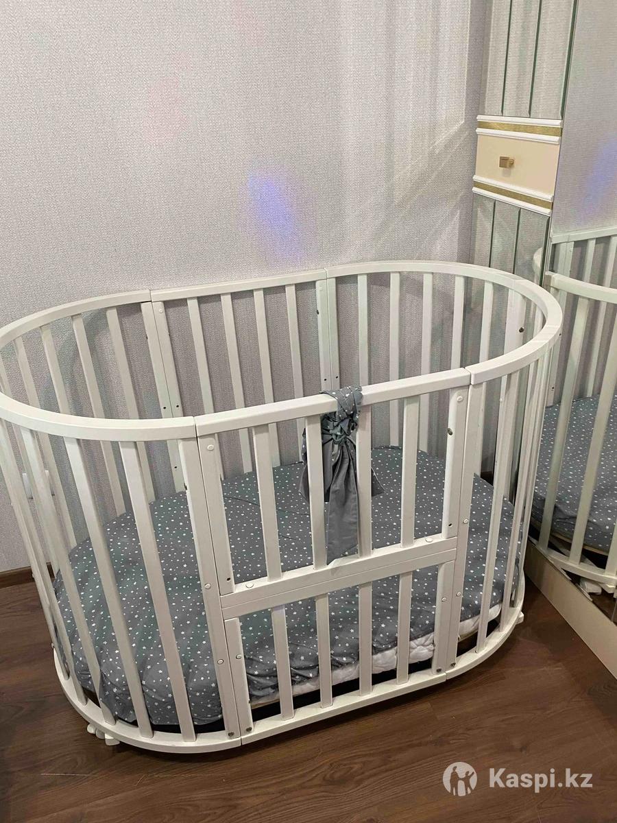 Деревянная детская кровать, 7 в 1; есть бортики; есть водонепроницаемый наматрасник. В хорошем состоянии, пользовались только 3 месяца. Самовызов. Можно торг.