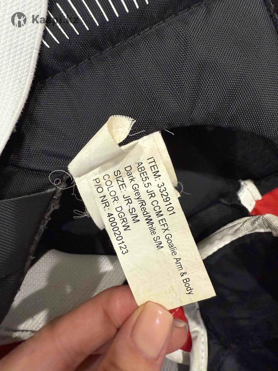 Нагрудник вратарский CCM E-Flex 3.5 JR •Бренд: CCM •Модель: E-Flex 3.5 (JR) •Размер: S-M (Junior Small-Medium) — подойдет для роста примерно до 140 см. •Цвет: Dark Grey / Red / White •Назначение: защита груди, плеч, ключиц, ребер и предплечий при игре в хоккей. •Конструкция: •Усиленные плечевые накладки с дополнительными амортизирующими вставками. •Подвижные сегменты для свободы движений. •Жесткие пластиковые вставки в области предплечий и локтей. •Регулируемые ремни и липучки для подгонки по фигуре. •Состояние: б/у, в хорошем состоянии; незначительные следы эксплуатации, все крепления и липучки рабочие. Описание: CCM E-Flex 3.5 JR — это профессионально разработанный нагрудник для юных вратарей. Он обеспечивает высокий уровень защиты, при этом не ограничивает подвижность. Подходит для тренировок и игр на любом уровне.
