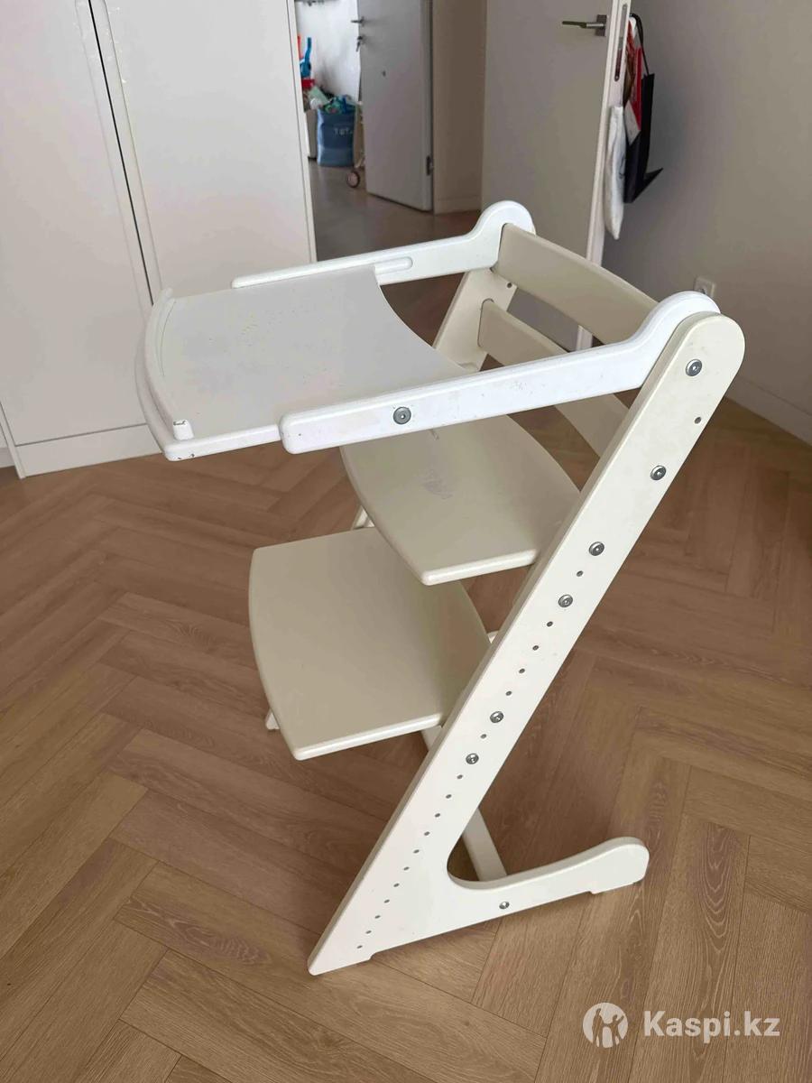 Детский стульчик для кормления (деревянный) Продам детский деревянный стульчик для кормления. Пользовались около 2 лет, состояние хорошее, полностью исправный. Стульчик устойчивый и прочный, регулируется высота сиденья и подножки, поэтому удобно использовать по мере роста ребёнка. Подходит как для кормления, так и для занятий за столиком. Есть небольшие следы использования на столике (видно на фото), на функциональность не влияет. Характеристики: •регулируемое сиденье •регулируемая подножка •прочная деревянная конструкция •устойчивый Город: Астана