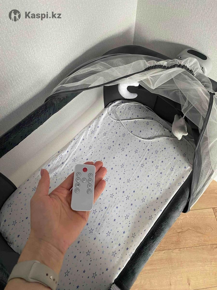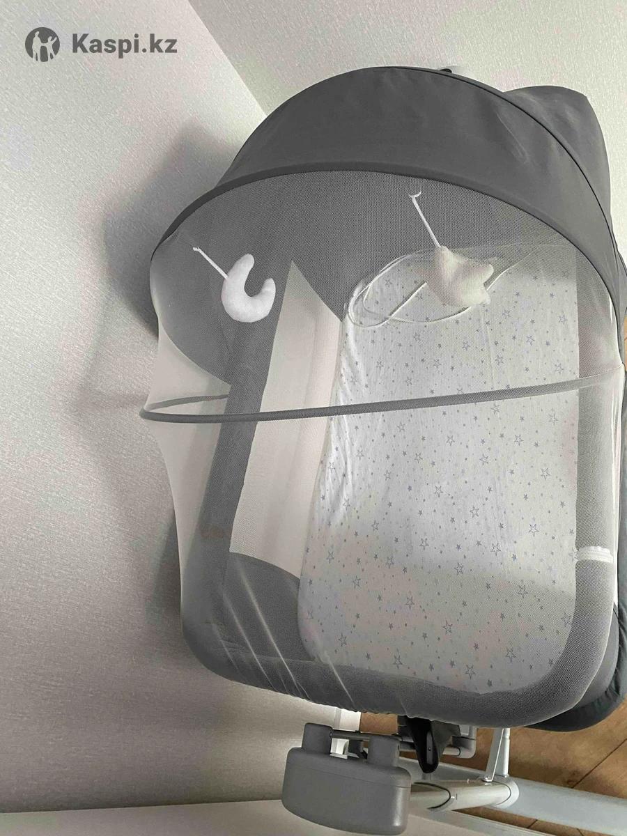 Продам детскую колыбель-кровать, в идеальном состоянии, есть разные режимы качания, музыка, имеется пульт, работает от сети. В подарок стойка монтессори.