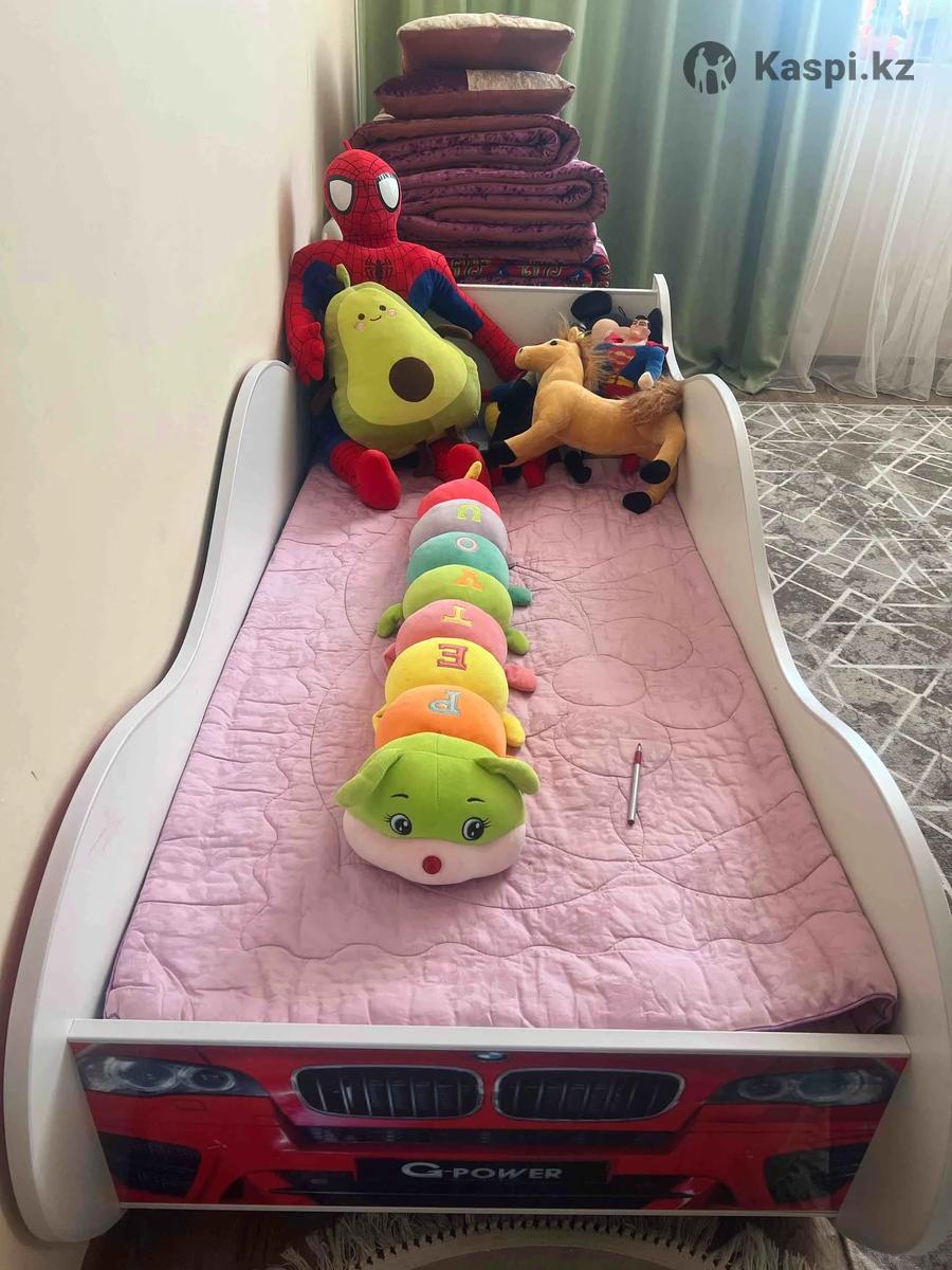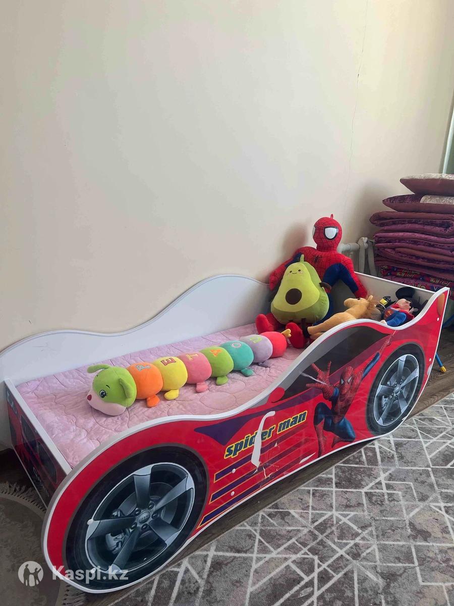 Детская кровать машинка с рисунком человек паук, брали пару месяцев назад, ребёнок не спал в ней, почти новая. Размеры в фото
