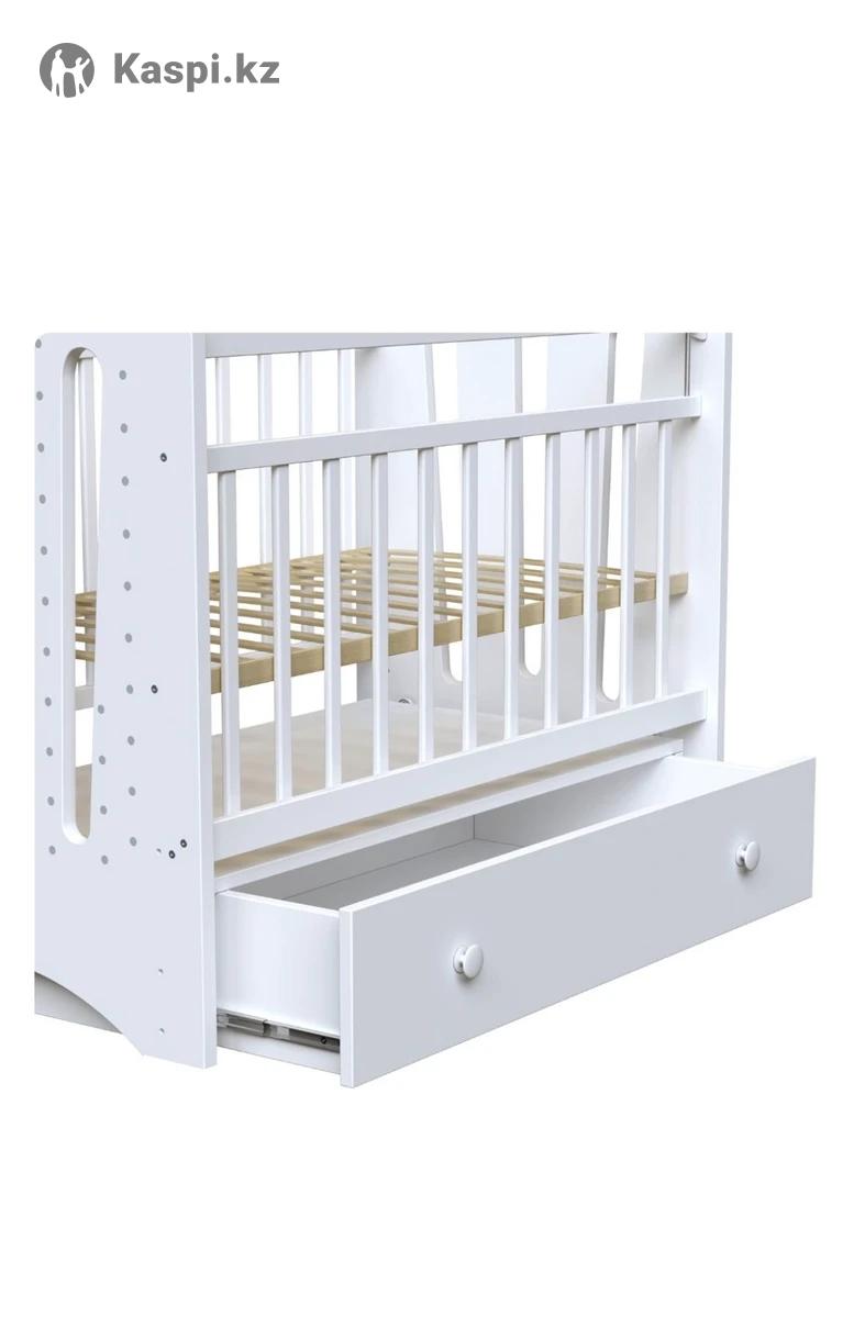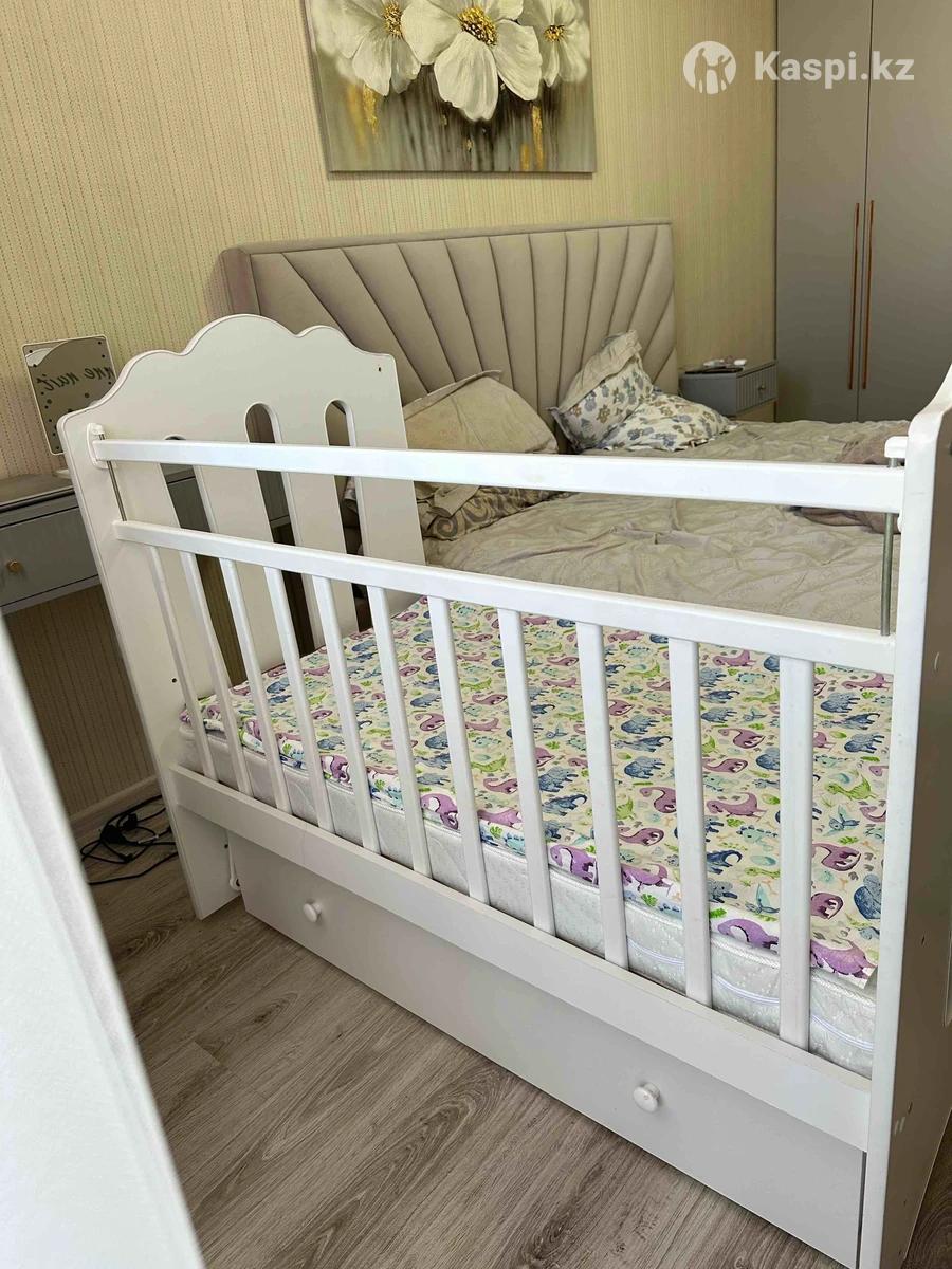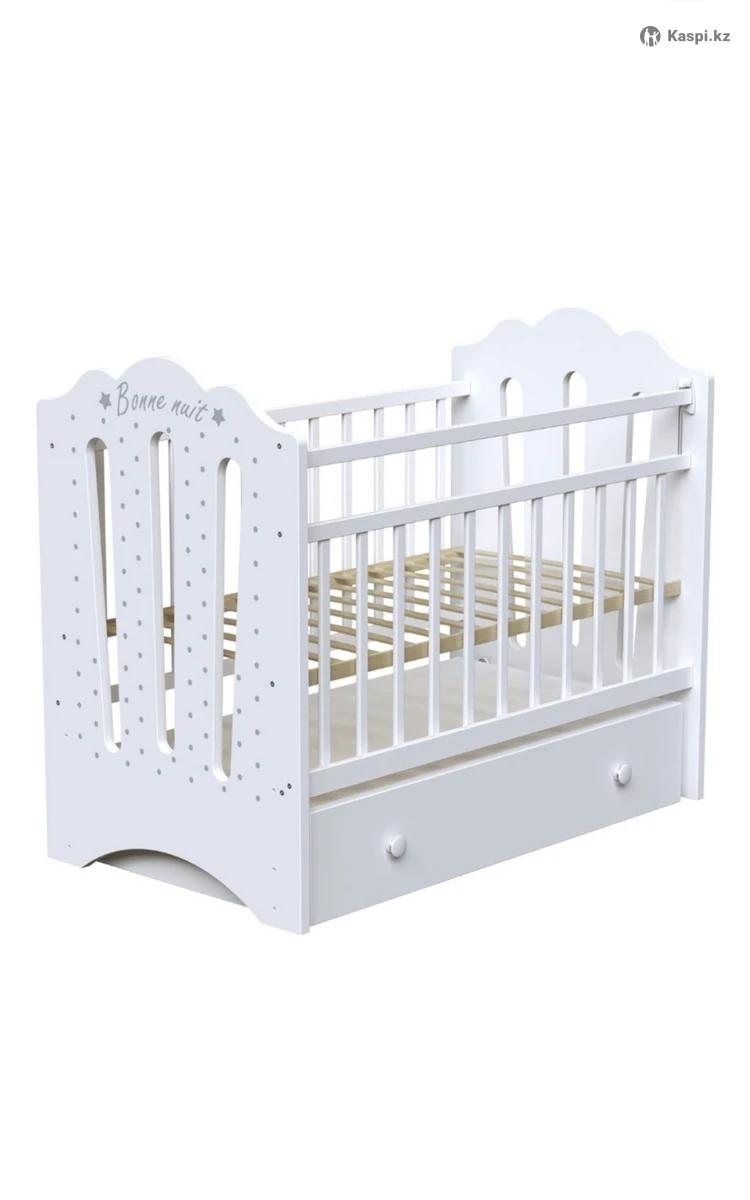 Белая, из массива березы, в отличном состоянии. Размер спального места 60×120 см. В комплекте ортопедический матрас - новый, использовали непромокаемый наматрасник! 2 уровня ложа- высота 40 и 60 см от пола Маятник поперечного качания - тихий и плавный Опускающаяся боковина Передняя и задняя стенки съемные Реечное дно для хорошей вентиляции Закрытый выдвижной ящик Кроватка удобная, безопасная и практичная. Подойдет с рождения до 5 лет. Разбирается полностью для удобной перевозки. 📍 Самовывоз: мкр. Береке