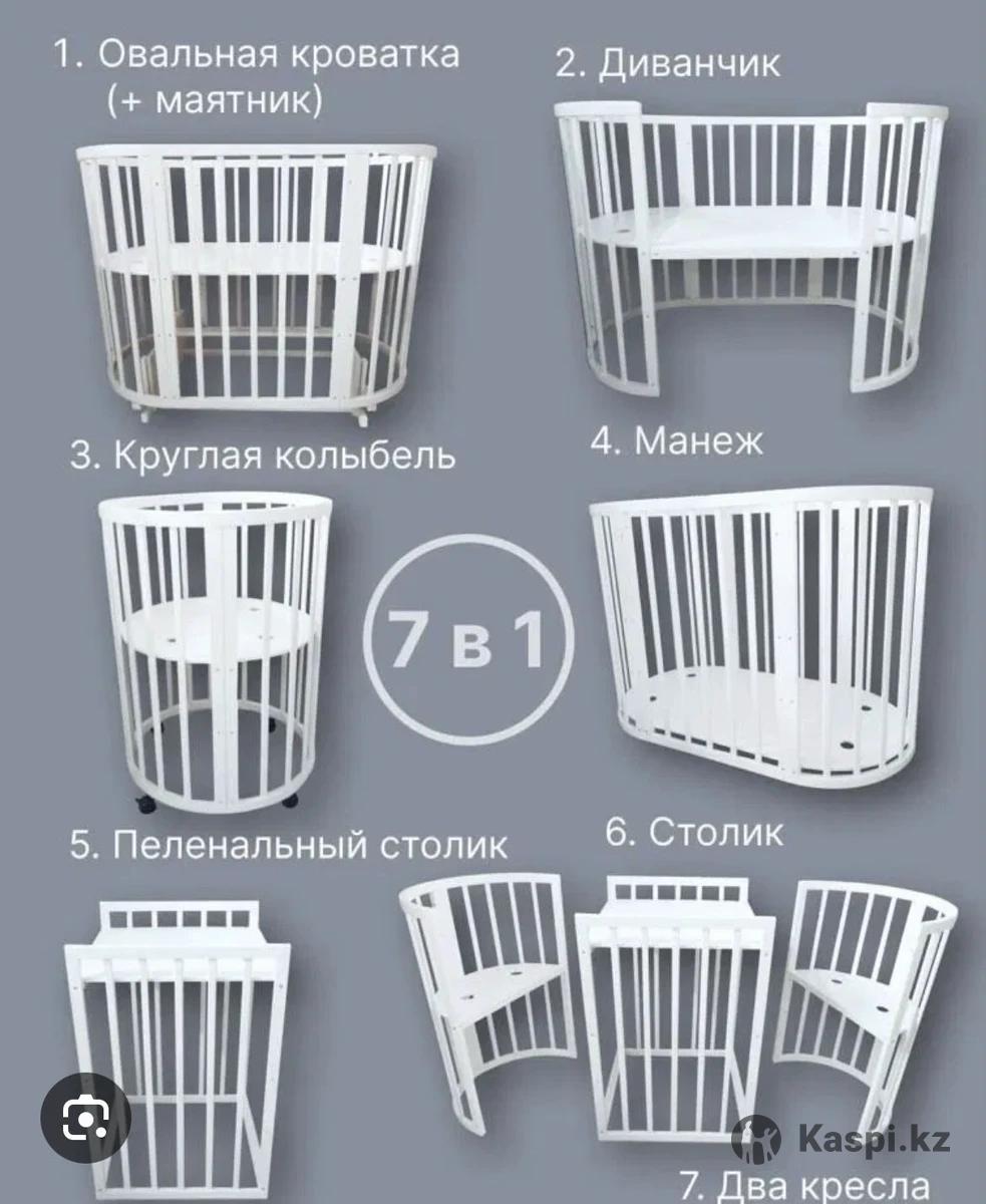 🔥 Продам детскую кроватку-трансформер 7в1 с маятником — идеальна с рождения до 9 лет! 🔥 Идеальный вариант для родителей, которые хотят красивую, удобную и многофункциональную кроватку, заменяющую сразу 7 предметов мебели — экономит деньги и место! ✨ Функции 7 в 1: • овальная кроватка • круглая кроватка • диван • два удобных кресла • пеленальный столик • манеж • маятниковый механизм — малыш укачивается легким движением кровати, без усилий с вашей стороны! 💎 Преимущества: • стильный цвет слоновая кость • красивый рисунок корона • прочная, надежная, качественное производство — Россия • подходит от 0 до 9 лет — трансформируется по росту ребенка • занимает мало места, отлично смотрится в интерьере 🎁 Подарки: •ортопедический матрас •бортики •по желанию — одеяло-конверт •по желанию — простынь на резинке 💰 Цена: 45 000 тг Состояние отличное, все аккуратное и ухоженное. 🚗 Есть доставка по городу! 📲 Писать/звонить: +)
