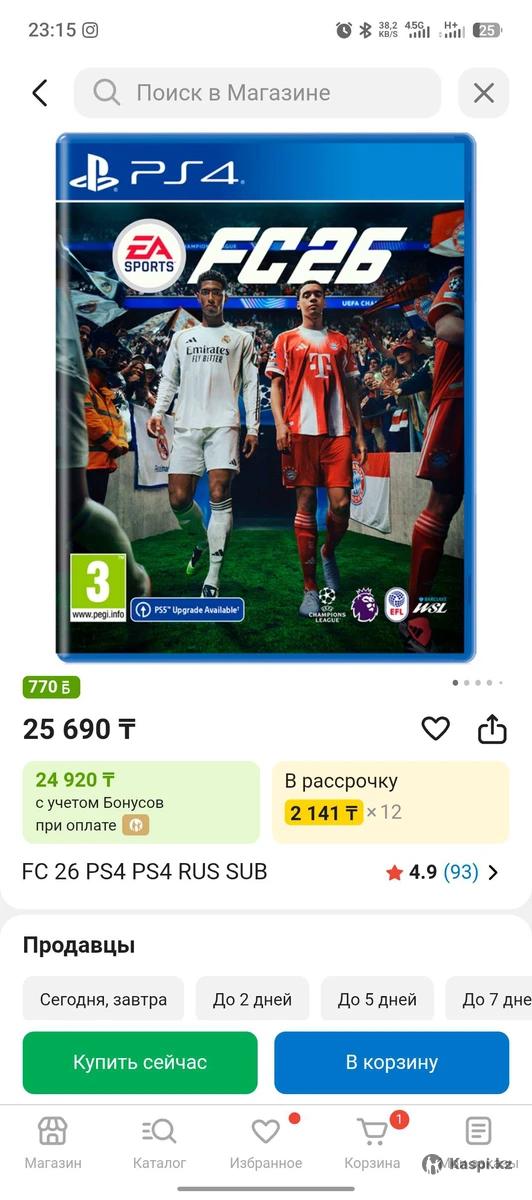 Продаю FC26 на пс5 и пс4 В отличном состоянии со всеми бумагами Есть небольшой торг