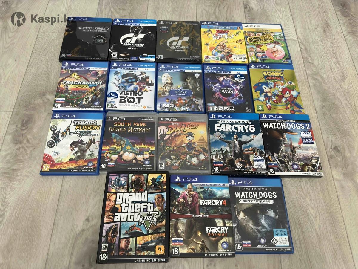 Торга и обмена нет. Цены ниже в описании. 1. Mortal Kombat X Специальное издание (игра не устанавливается полностью только первая часть) - 5.000 2. Gran Turismo Sport Stellbook ( американка без русского ) - 13.000 3. Gran Turismo Sport Stellbook ( русская версия ) - 13.000 4. Asterix & Obelix Slap Them All! Limited Edition ( После обновления есть русский язык) - 13.000 5. Super Monkey Ball Banana Mania - 10.000 6. Trackmania Turbo - 10.000 7. Astro Bot VR ( есть русский язык ) - 12.000 8. Fun Pack Korean Oasis Games VR - 12.000 9. PS4 VR Worlds - 12.000 10. Sonic Mania Plus версия в картонном рукаве с артбуком (новый) - 15.000 Fusion: The Awesome Max Edition - 10.000 12. Южный парк Палка Истины PS3 - 7.000 13. DuckTales: Remastered / Утиные истории (американка, новый но есть повреждения пленки) - 25.000 14. FarCry 5 Delux Edition - 15.000 15. Watch 2 Delux Editon ( только макулатура без диска ) - 3.000 16. GTA 5 семи дисковое издание для ПК ( ключ активирован ) - 5.000 17. Бандл FarCry 4 и FarCry Primal - 15.000 18. Watch Dogs Полное издание - 12.000