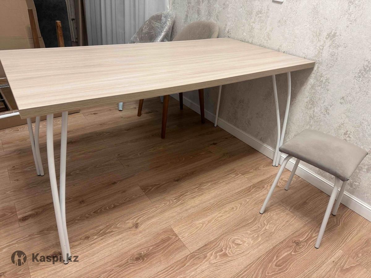 Стол на железных ножках, длина 1.50 см, ширина 75 см. Имеются табуреты 4 шт