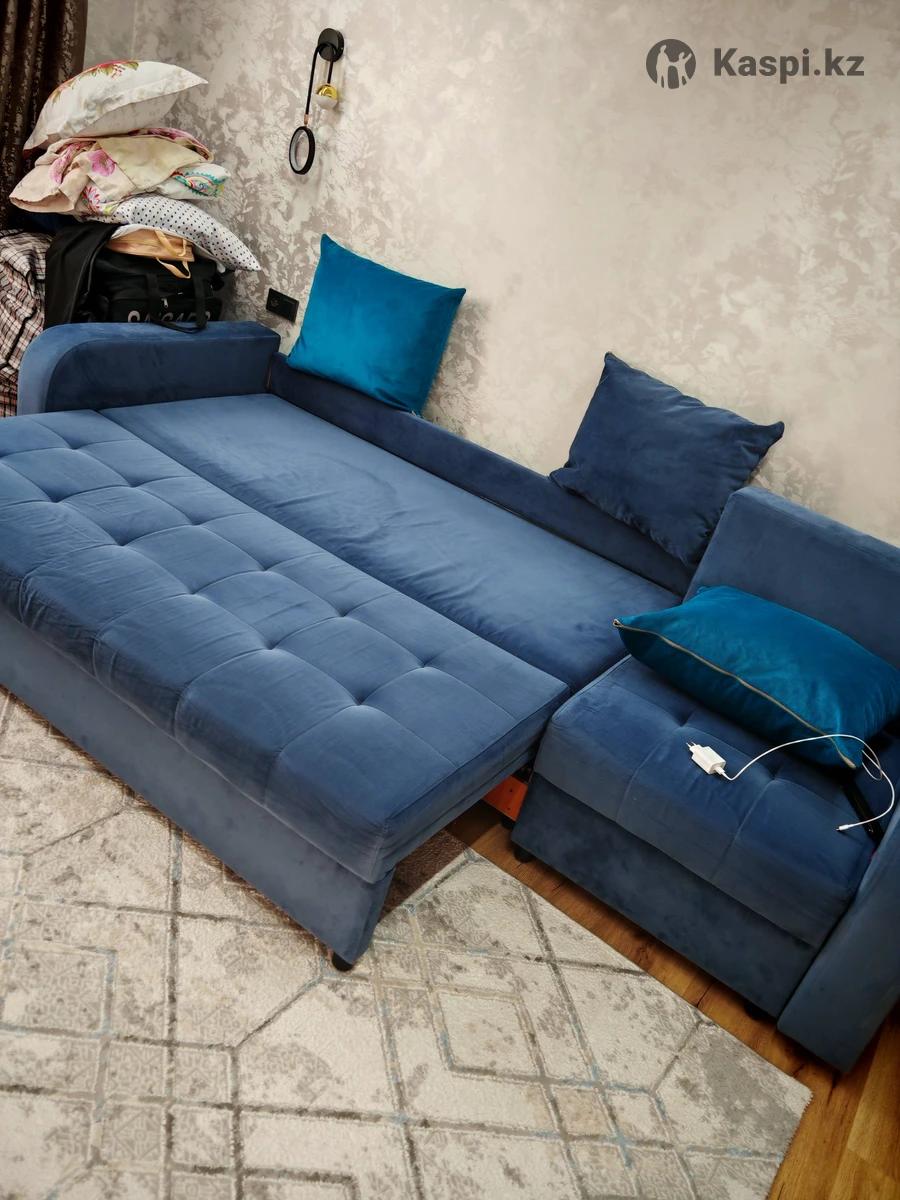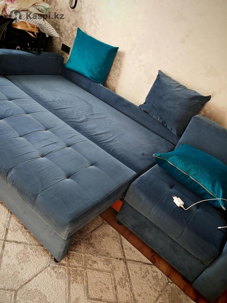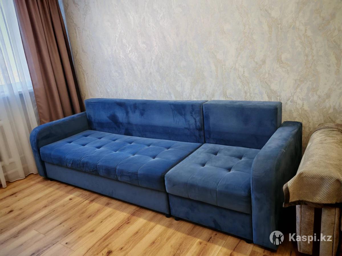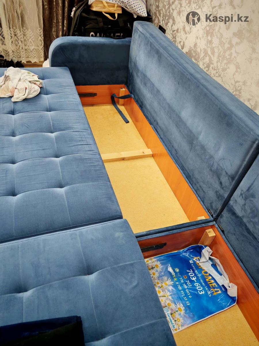 Диван в отличном состоянии, продаю так как купили новый, находится на кшт 20мкр. Можно сделать как угловой с любой стороны. Внизу есть ящики, цвет темно.синий. 5 шт подушки (2 из них бирюзового цвета, 3 шт темно синего .) на фото не все подушки видны, размер 3 м. Самовывоз. Пишите звоните цена 120тыс.