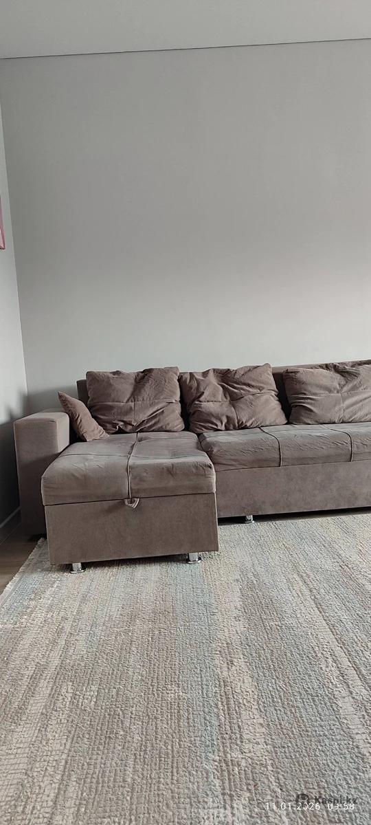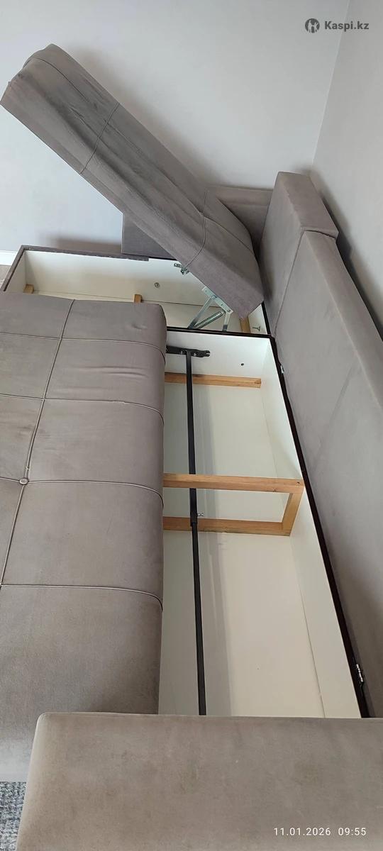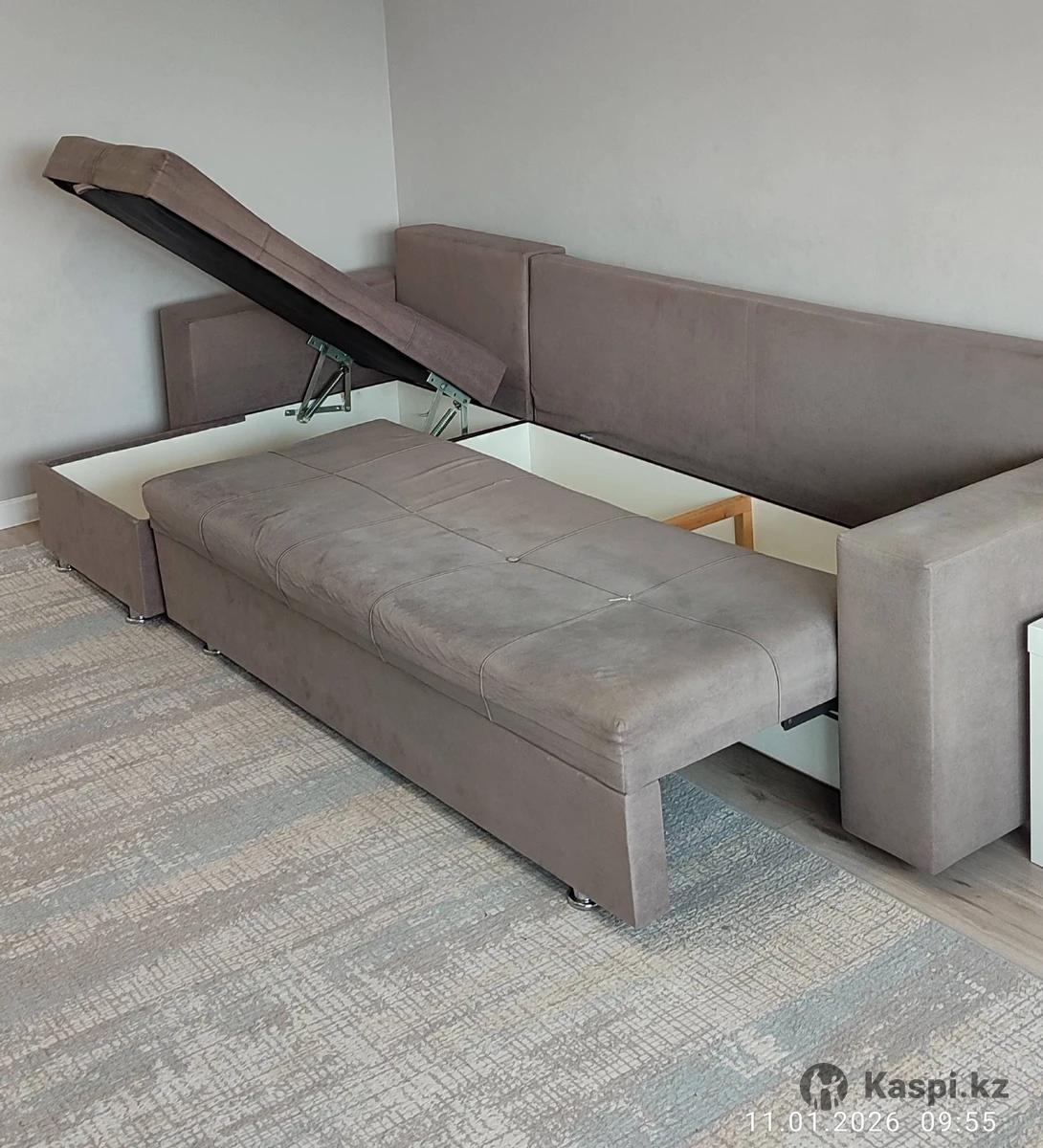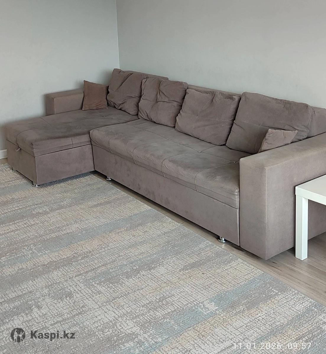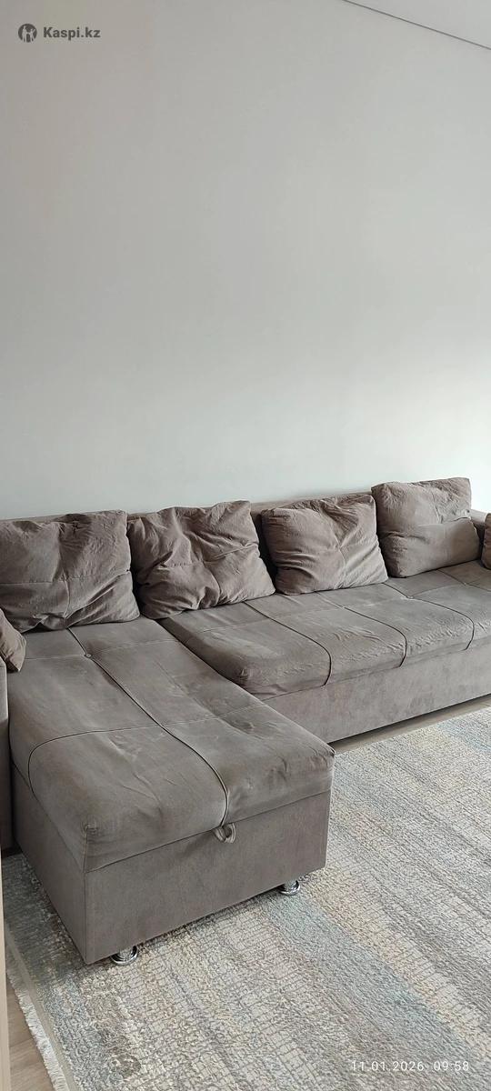 Продам диван, угловой серого цвета, с подушками.3 метра в длину, 1.5 метра в ширину. Есть два бельевых ящика. Б/у. Самовывоз район Орбиты.
