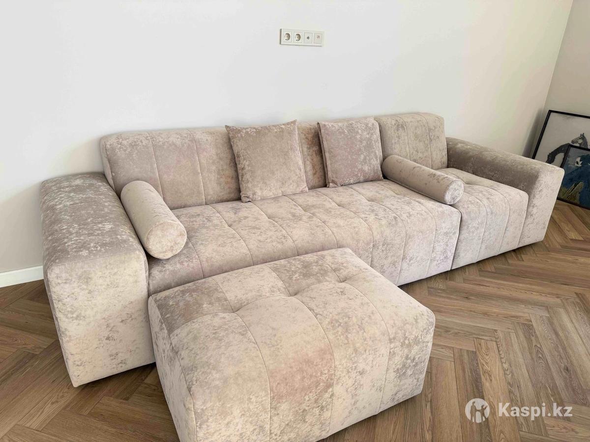 диван- хорошо подойдет для офиса , салона , приемных. Делали для себя не подошел. Стиль джапанди. Длина три метра, обивка велюр, наполнение пружины