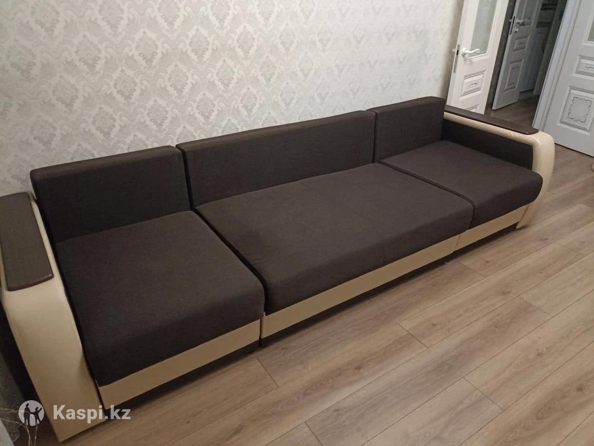Продаю б/у диван. Состояние хорошее, раскладывается, механизм рабочий, все комплектующие присутствуют, длина 2.95 м, ширина в неразложенном виде 1 м