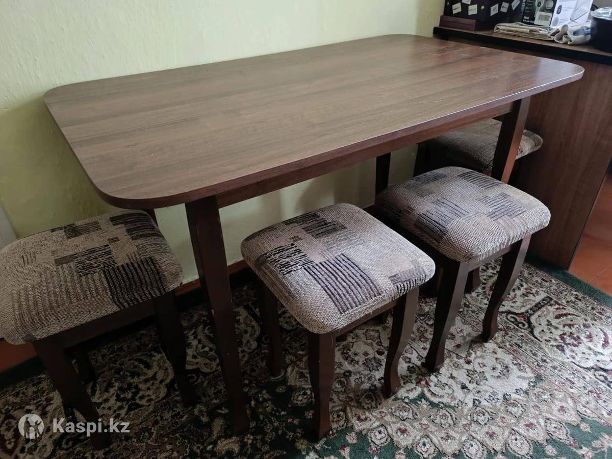 Стол, стулья, стояли долго ими никто не пользовался. Диван долго стоял на кухне, в хорошем состоянии кроме задней части, подрал кот пока не видели.