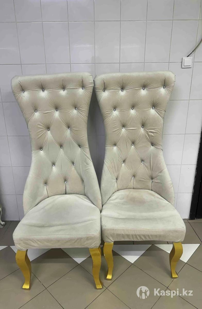 Элегантные мягкие стулья с высокой спинкой в стиле неоклассика / luxury. Обивка — приятный на ощупь велюр светлого оттенка, декоративная каретная стяжка со стразами. Ножки — из массива дерева, окрашены в золотой цвет. ✨ Подойдут для: •ресторана •кафе •салона красоты •фотозоны •дома (гостиная, спальня) 📌 Состояние: б/у, аккуратные, без поломок 📌 Очень удобные и устойчивые 📌 Смотрятся дорого и стильно