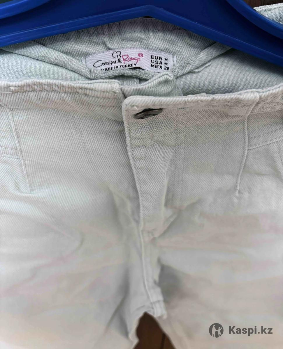 Джинсы отличного качества, по фасону момсы. Первая в голубом цвете, вторая мятного. Подойдут на 44 размер. Надевалось пару раз. Каждая по 5000 тг.