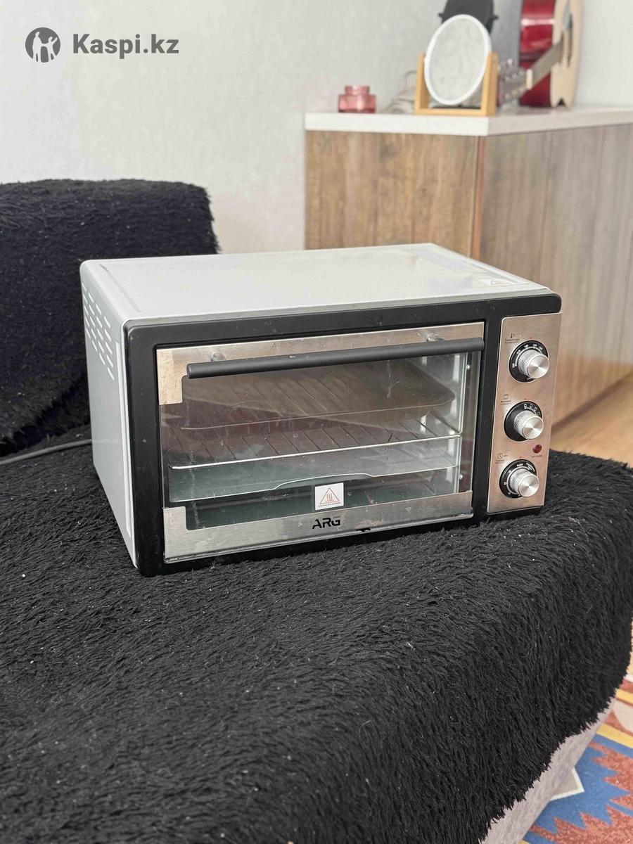 Мини-печь ARG Состояние отличное, пользовались совсем мало. Полностью рабочая. В комплекте: решётка, противень, поддон для стекания жидкости. Есть режим подогрева. Цена: 10 000 тенге.