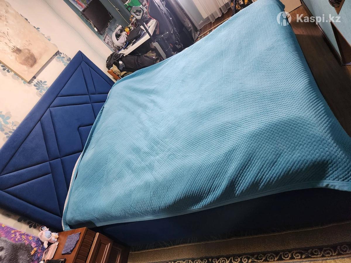 Кровать в круг мягкая (велюр). Синего цвета. Размер 180×210. Практически новая. С нишей для белья. Купили 4 месяца назад.