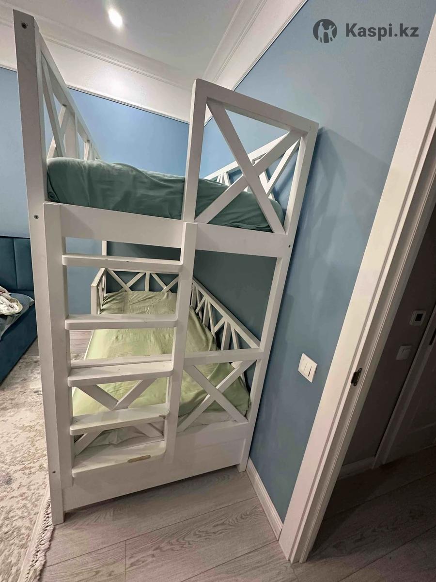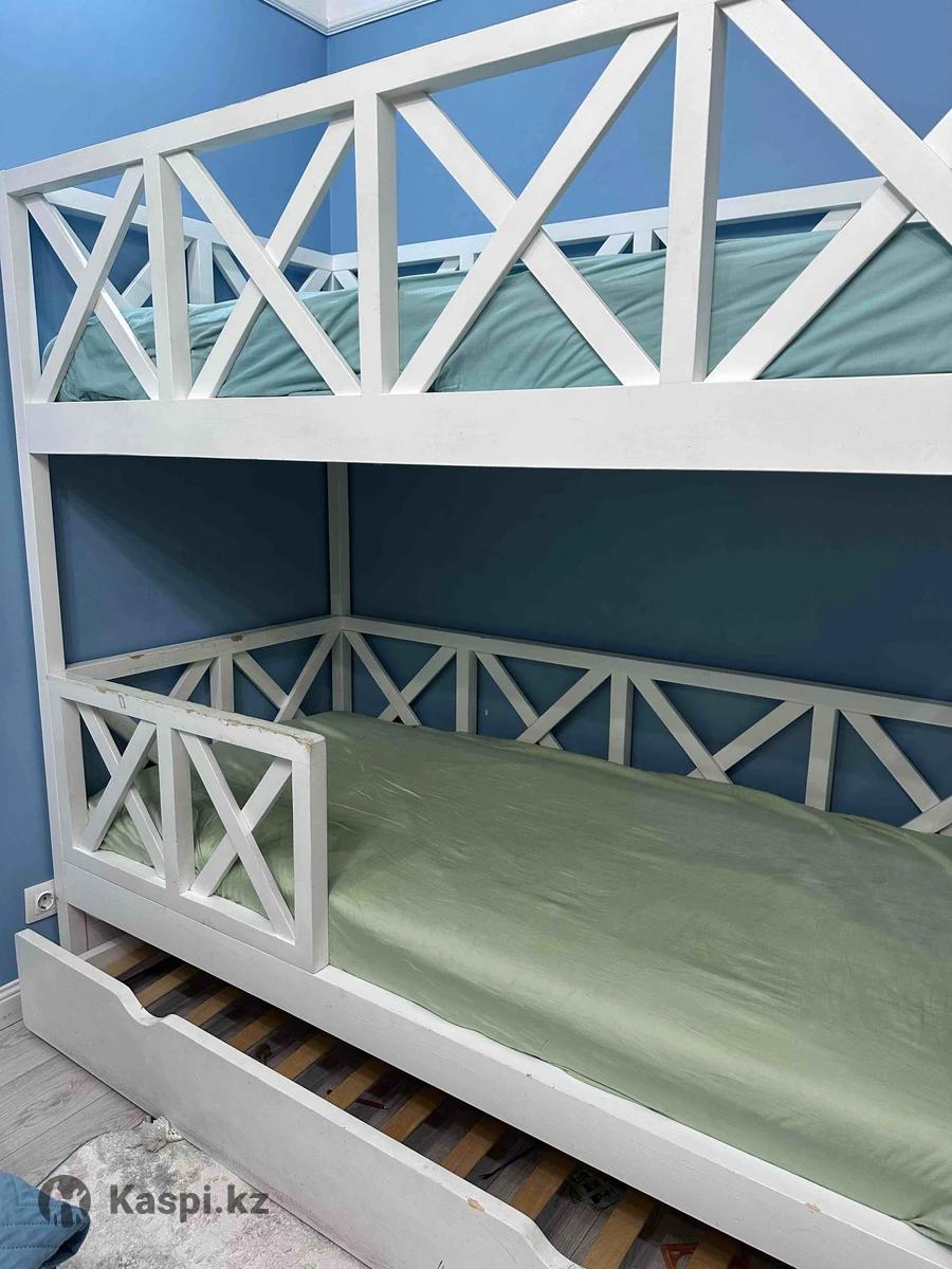Продам детскую двухъярусную кровать 3 спальных места Нижнее третье место можно положить под вещи Устойчивая, массив сосны Покупали в Korkem kids Без матрасов Размер матрасов 90/190 Кровать 100/204 см