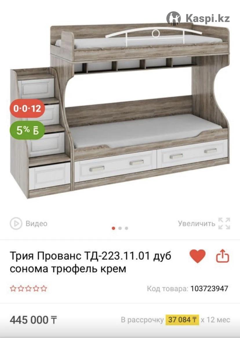 Продам кровать двухъярусную Трия Прованс, цвет дуб сонома трюфель крем, Россия, в отличном состоянии. С матрасами. Цена 190 тыс.тг.