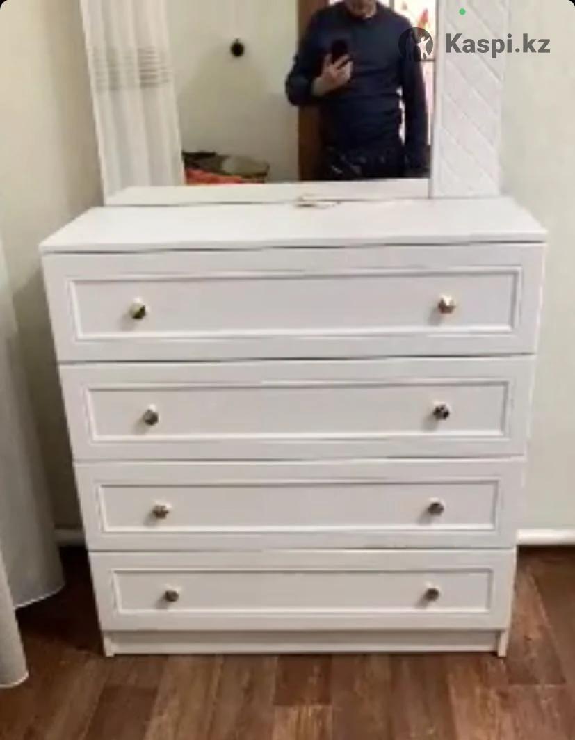 Продам двуспальную кровать в идеальном состоянии и комод с зеркалом. Были В пользовании меньше года. Кровать размером 160200 с подъемным механизмом. Без матраса. Кровать в разобранном виде. Цена кровати 75 000 тенге. У комода есть желтое пятно небольшое от взрыва светильника размером чуть больше монеты 100тг. Отдам за 30 000 тг. Самовывоз. Район Затон.