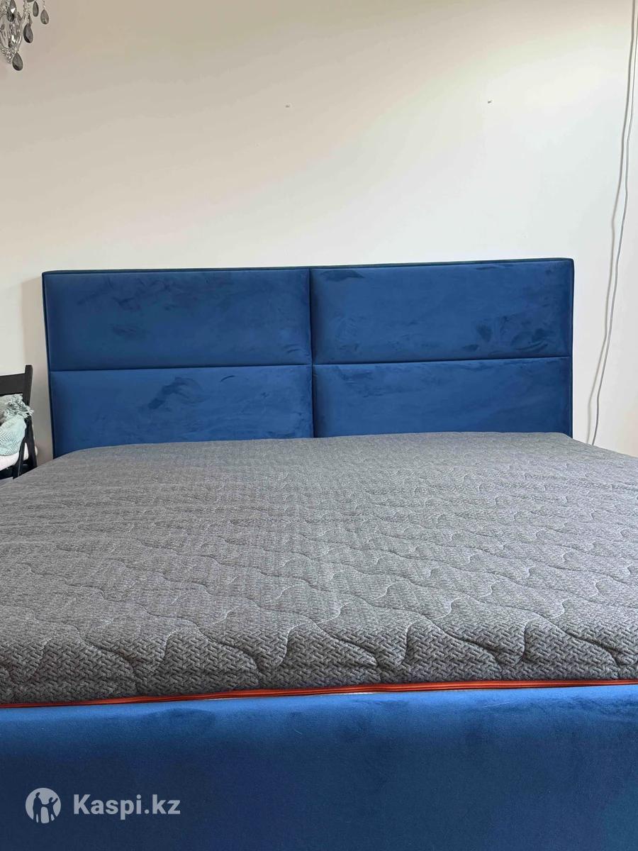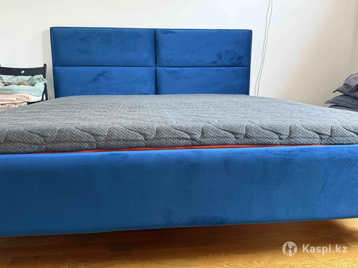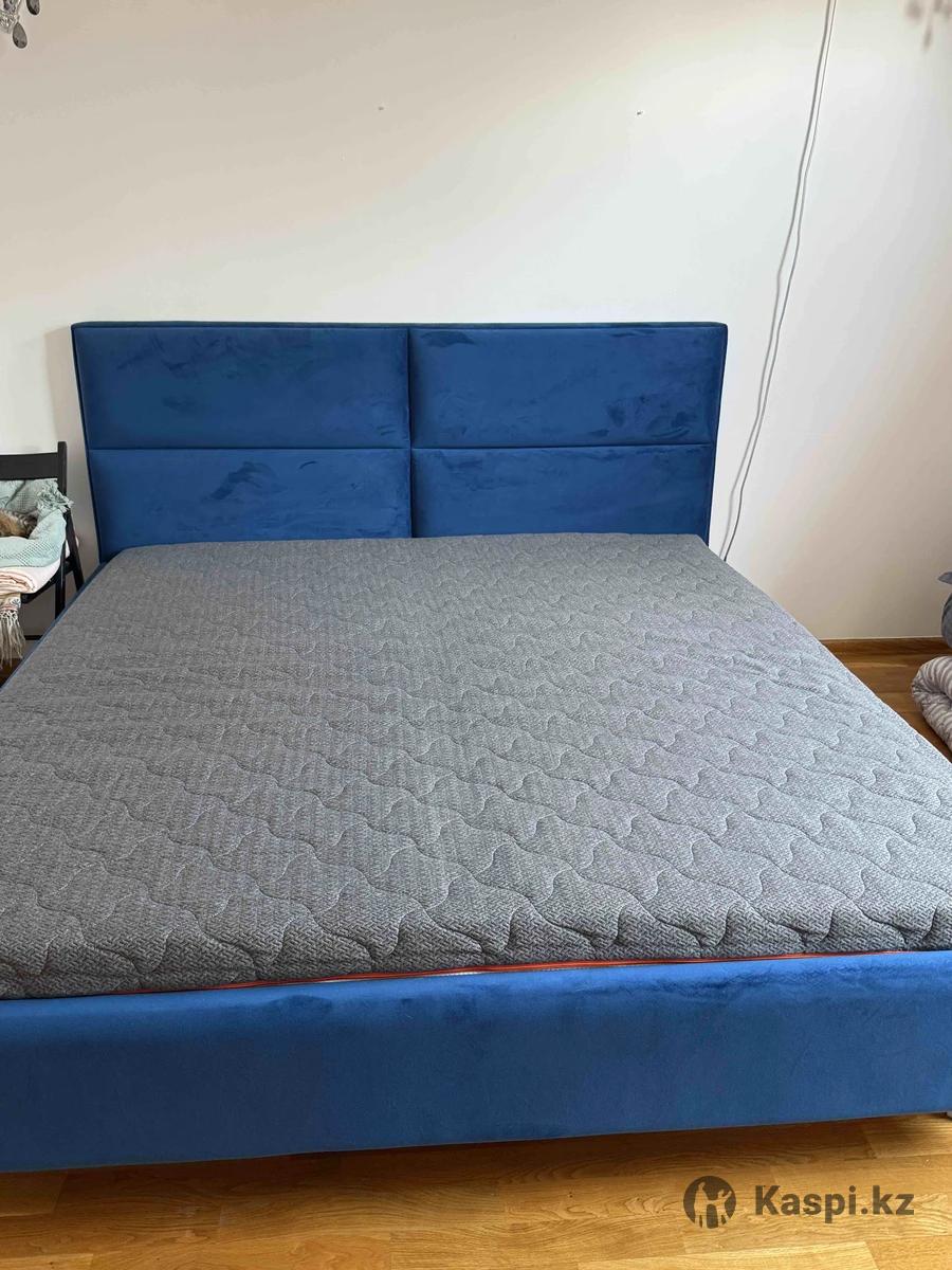 Продам двуспальную кровать с матрасом в синем цвете, причина переезд. В хорошем состоянии.