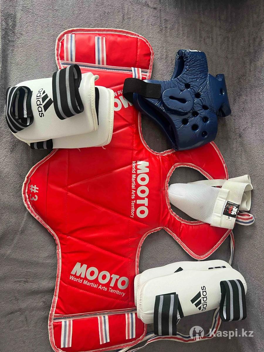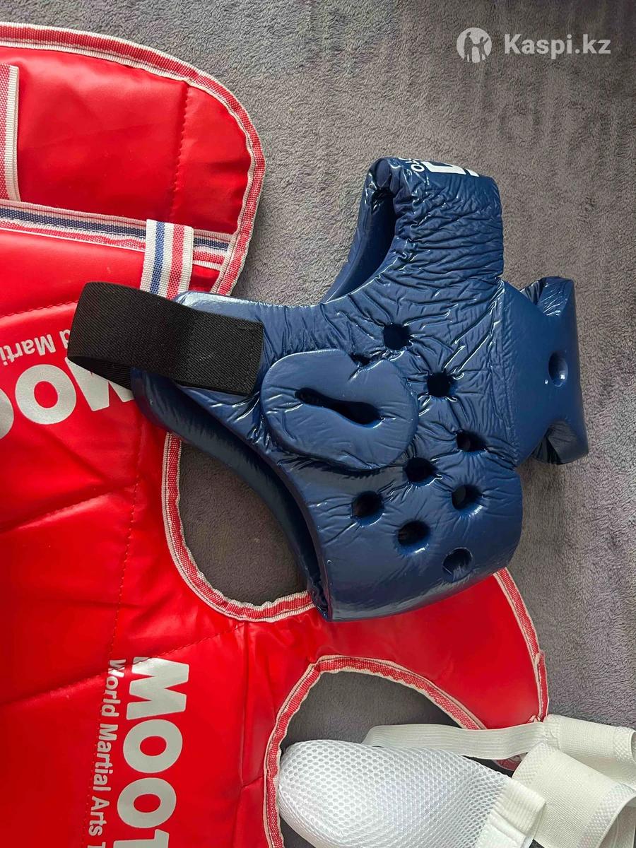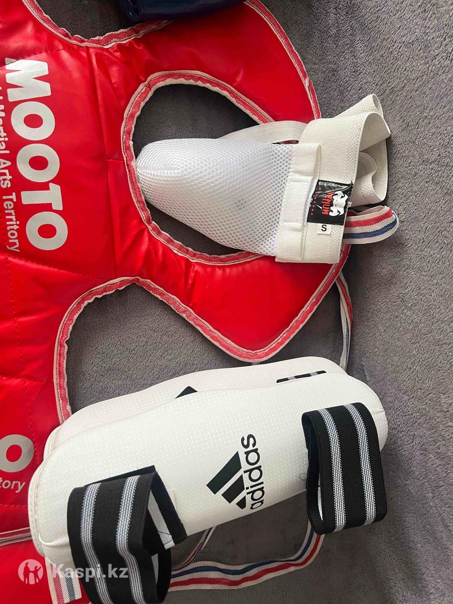Продам экипировку таэквондо в комплекте шлем, защитный жилет, нарукавники, защита голени, бандаж. Размер мальчику 5-6-7 лет