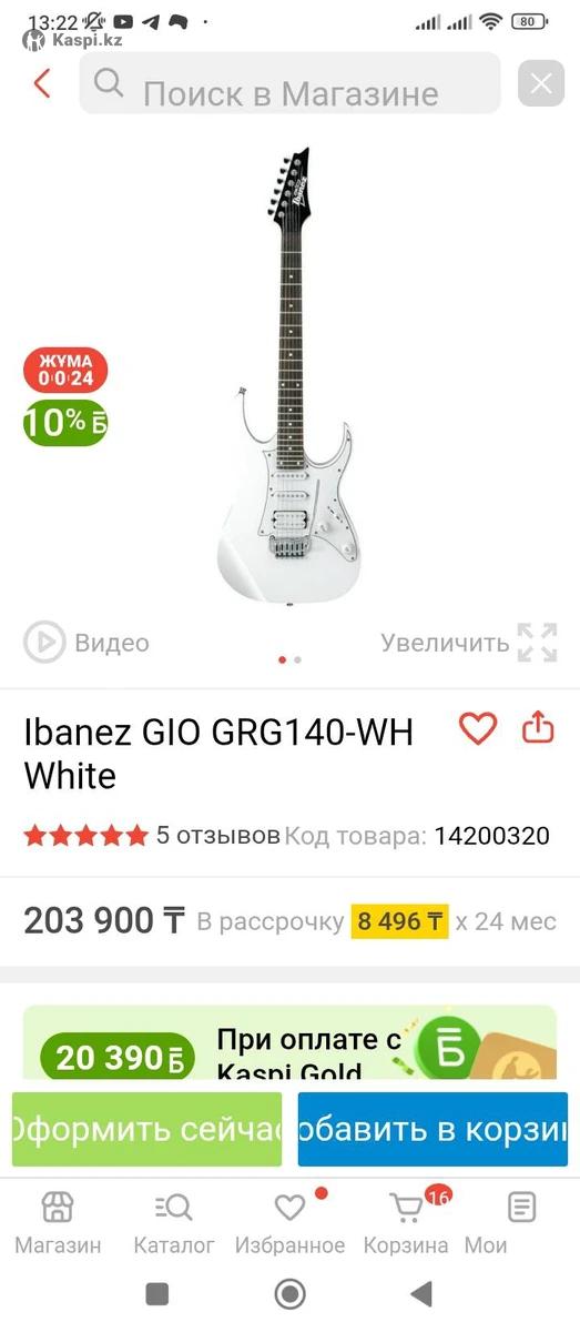 Продам новую электрогитару Ibanez GIO GRG140-WH