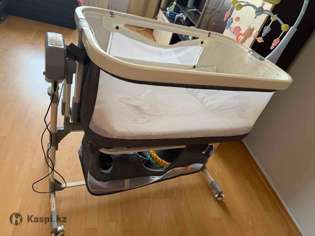 Продам электролюльку — очень выручала с первых месяцев 🙏 Идеально подойдёт для укачивания и спокойного сна малыша. • Несколько режимов качания • Можно включить музыку / звуки • Регулируется высота • Снизу имеется корзина • Сетка на люльку