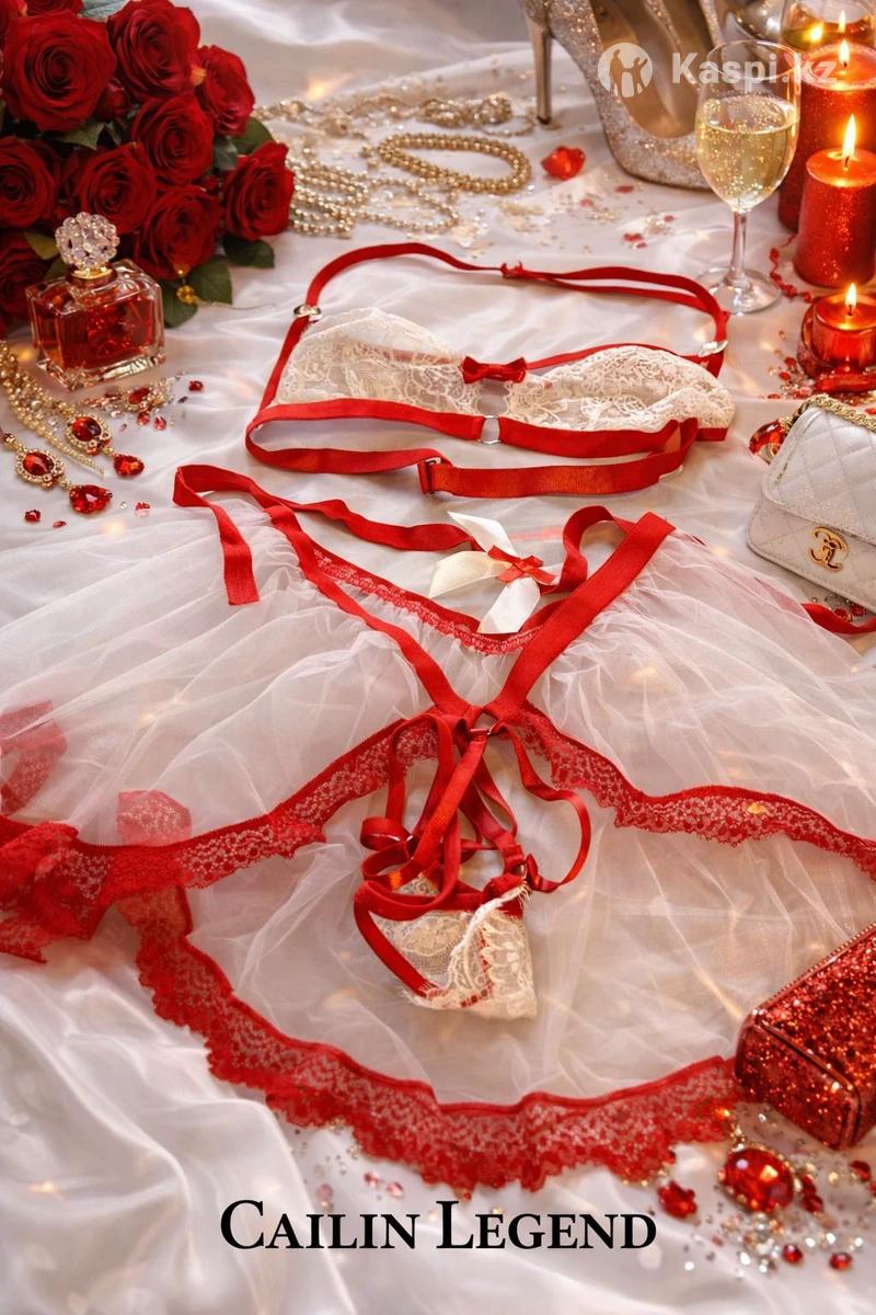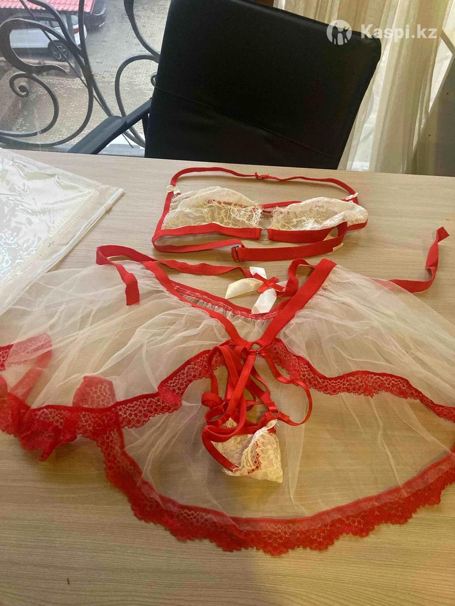 Контрастный комплект из белого кружева с красной отделкой. Размеры M , S , L . Закрыли бутик распродажа .