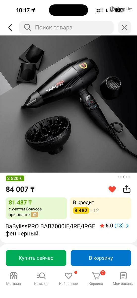 Фен Babyliss PRO — оригинал, идеальное состояние Продаю профессиональный фен Babyliss PRO. Использовался аккуратно, состояние идеальное. Оригинал Покупала за 80 000+, продаю за 50 000 Мощный, быстро сушит волосы, подходит для густых волос и укладок с объёмом Причина продажи: перешла на другой стайлер Пишите, отвечу оперативно
