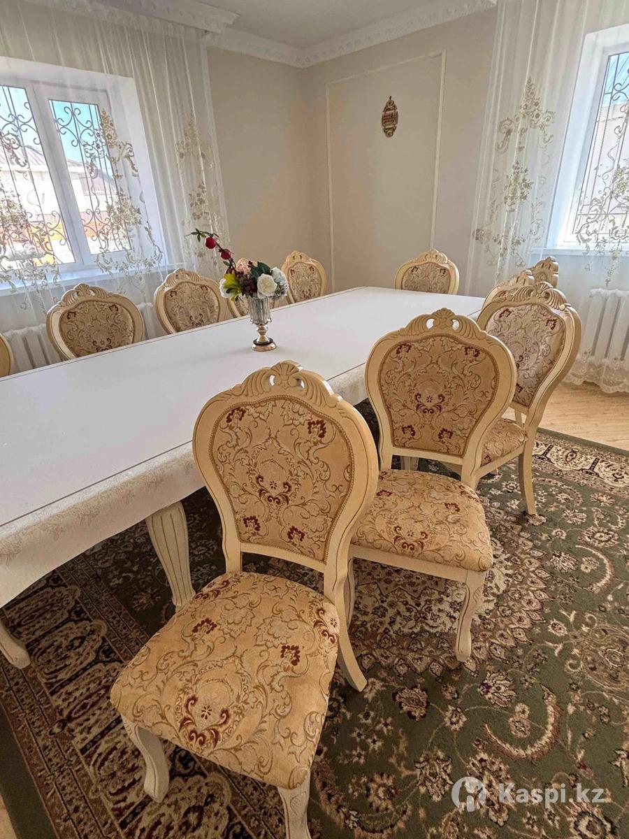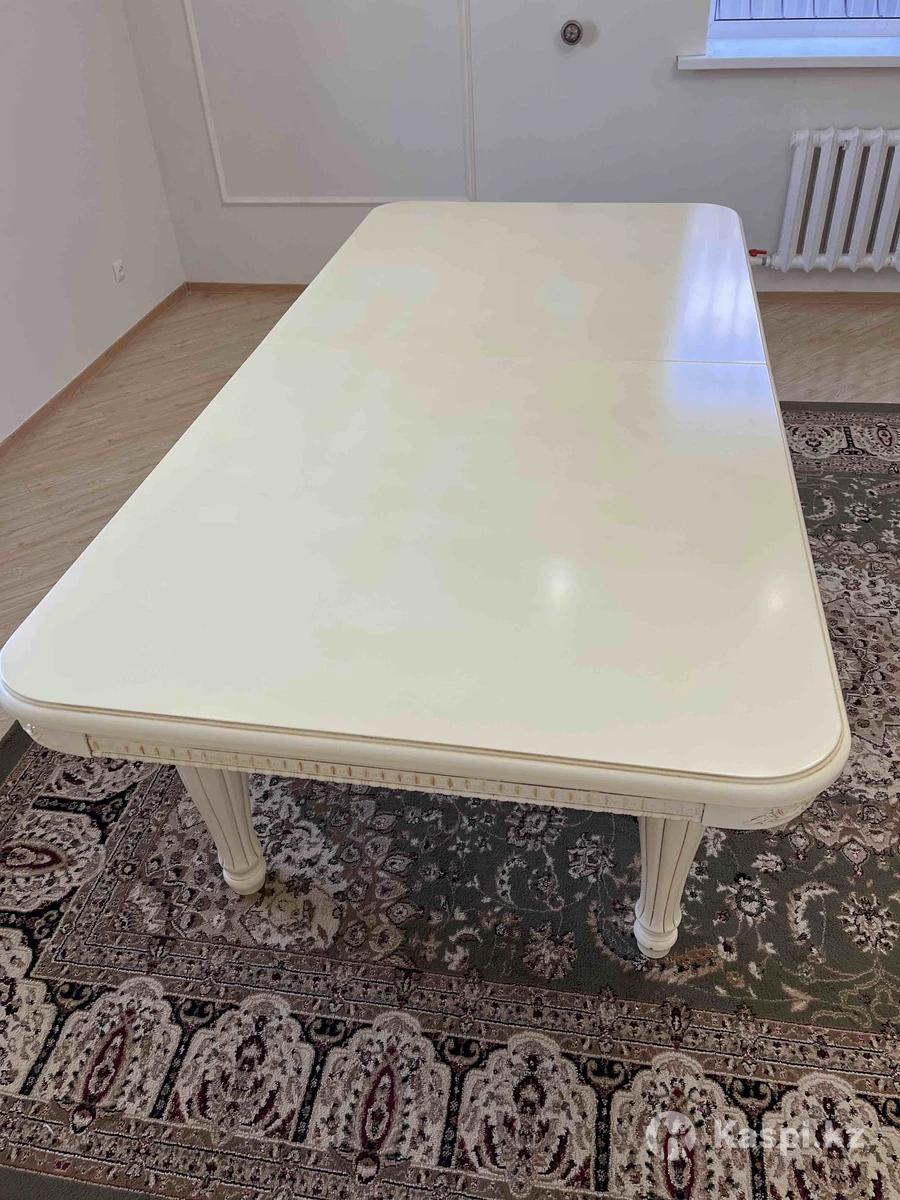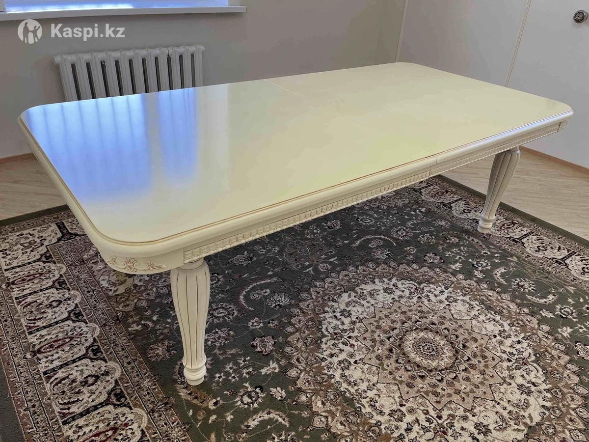 Продам гостиный стол со стульями Стол: Ширина 1,2 Длина 3 Стулья 12 шт Все в отличном состоянии Стол укорачивается Массивный стол со стульями на болтах, не на клею. Качественно сделано