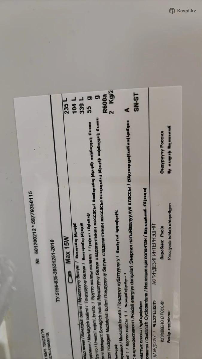 Продаем холодильник в рабочем состоянии. Два отсека. Объем 339 л. Самовывоз с Уркер. Производство Россия.