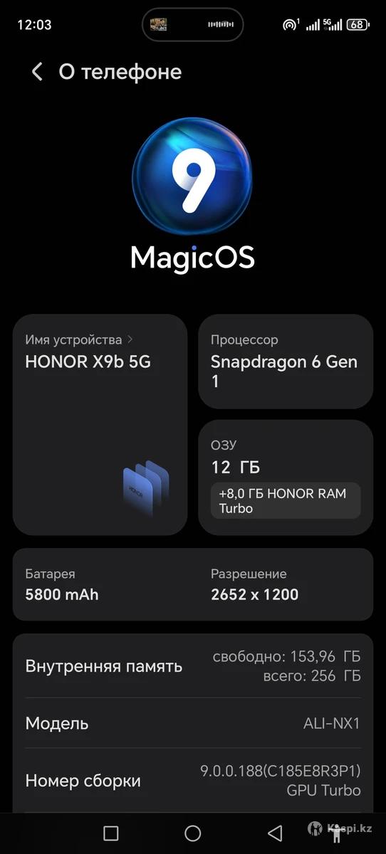 Продам телефон Хонор х9б 5G оперативной памяти 12гб встроенной 256гб состояние 97/100 цена 150.000