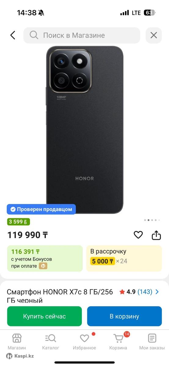 Продам НОВЫЙ honor x7c 256ГБ. Получила в Мечте в подарок. Стоимость там 119.000, продаем за 70000. Абсолютно новый, нам не нужен. Поэтому и продаю. Чехол в подарок вместе. Зарядное устройство. Характеристика в фото. Цвет черный. Камера хорошая. Есть Торг и доставка