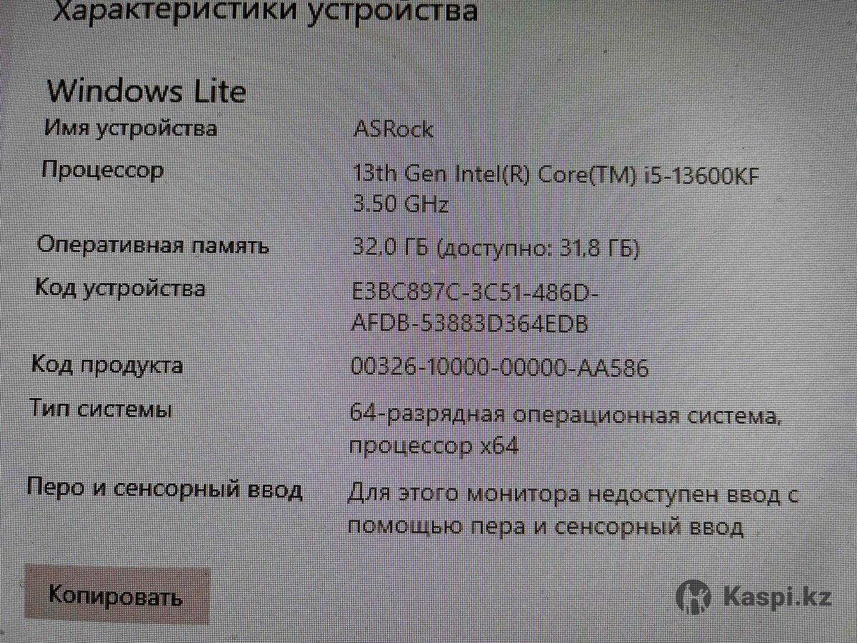 Продам мощный игровой компьютер: Процессор: I5-13600KF Видеокарта: GIGABYTE AMD Radeon RX7600 Мат.Плата ASRock B760M PRO RS/D4 Оперативная память Kingston KF436C16RB12/16 32гб 3600GHZ Память: M2 Kingston 1TB Кулер: Deepcool AK400 Digital Блок питания: GIGABYTE P650B Монитор 25 дюмов 240гц