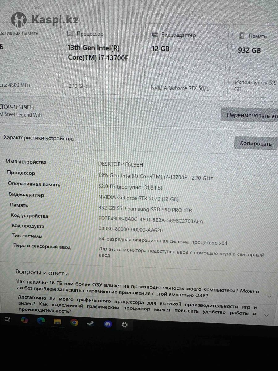 Продам почти новый компьютер, собирался летом этого года, причина продажи срочно нужны деньги, отдам все в сборе с креслом моником и девайсами процессор Intel Core i7-13700f OEM Видеокарта 12 GB Gigabyte RTX 5070 WINDFORCE SFF GV-N5070WF3-12GD Материнская плата ASRock B760M STEEL LEGEND WIFI Кулер для процессора ID-Cooling FROZN A410 GDL SSD накопитель 1TB Samsung 990 PRO MZ-V9P1T0BW Блок питания 850W Cougar GEX PRO 850 Комплект модулей памяти Kingston Fury Beast RGB KF560C36BBE2AK2-32 DDR5 32GB (Kit 2x16GB) 6000Mhz