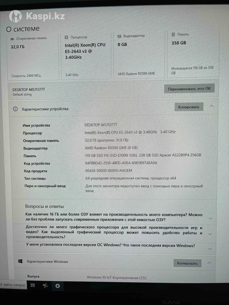 Мощный компьютер, полностью готов к работе и играм. Характеристики: • Intel Xeon E5-2643 v3 (3.40 GHz) • 32 GB оперативной памяти • Sapphire RX 590 GME 8GB • SSD 358 GB (быстрая загрузка) Монитор: SANC 23.8” IPS, 100 Гц( пол года в использовании) В комплекте: • Механическая клавиатура • Беспроводная мышь Darmoshark Тянет спокойно CS2, Dota 2, GTA V, PUBG.