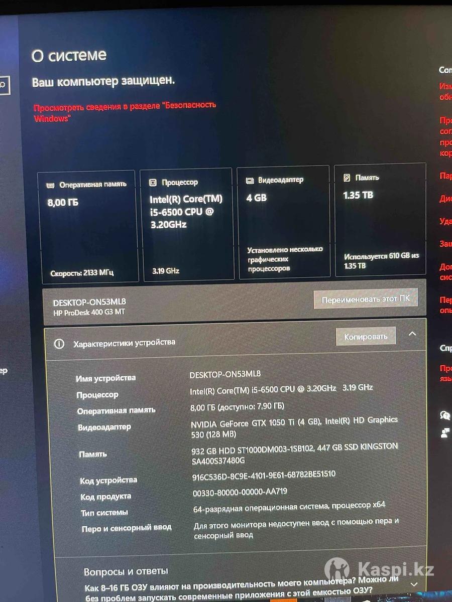 HP ProDesk 400 G3 MT Процессор - Intel Core i5-6500 CPU Оперативная память - 8 гб Видеокарта - NVIDIA GeForce GTX 1050Ti(4Gb) Память - 1.5 TB Тип системы: х64 Реальному клиенту хорошая скидка