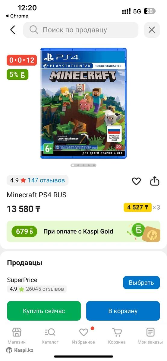 Продам игру на playstation 4 minecraft, полностью новая не распечатанная. Лицензионный PS4 диск Minecraft / Майнкрафт. Полностью на русском языке. Подходит и для PlayStation 5. Стартовый набор: - Набор текстур "Город" - Микс "Греческая мифология" - Набор скинов 1 - 700 жетонов (внутриигровая валюта) - 1-4 игрока оффлайн - 2-8 игроков онлайн