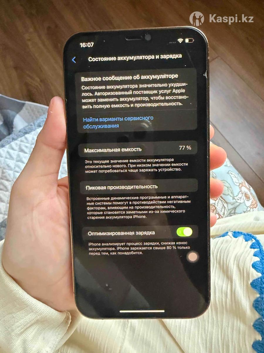 Продаю iPhone 12 Pro Max 128гб. Телефон полностью исправен: камера, звук, Face ID и все функции работают без проблем. Корпус и стекло без царапин. Без коробки и зарядного устройства. Состояние аккумулятора 77%.Пишите, есть торг