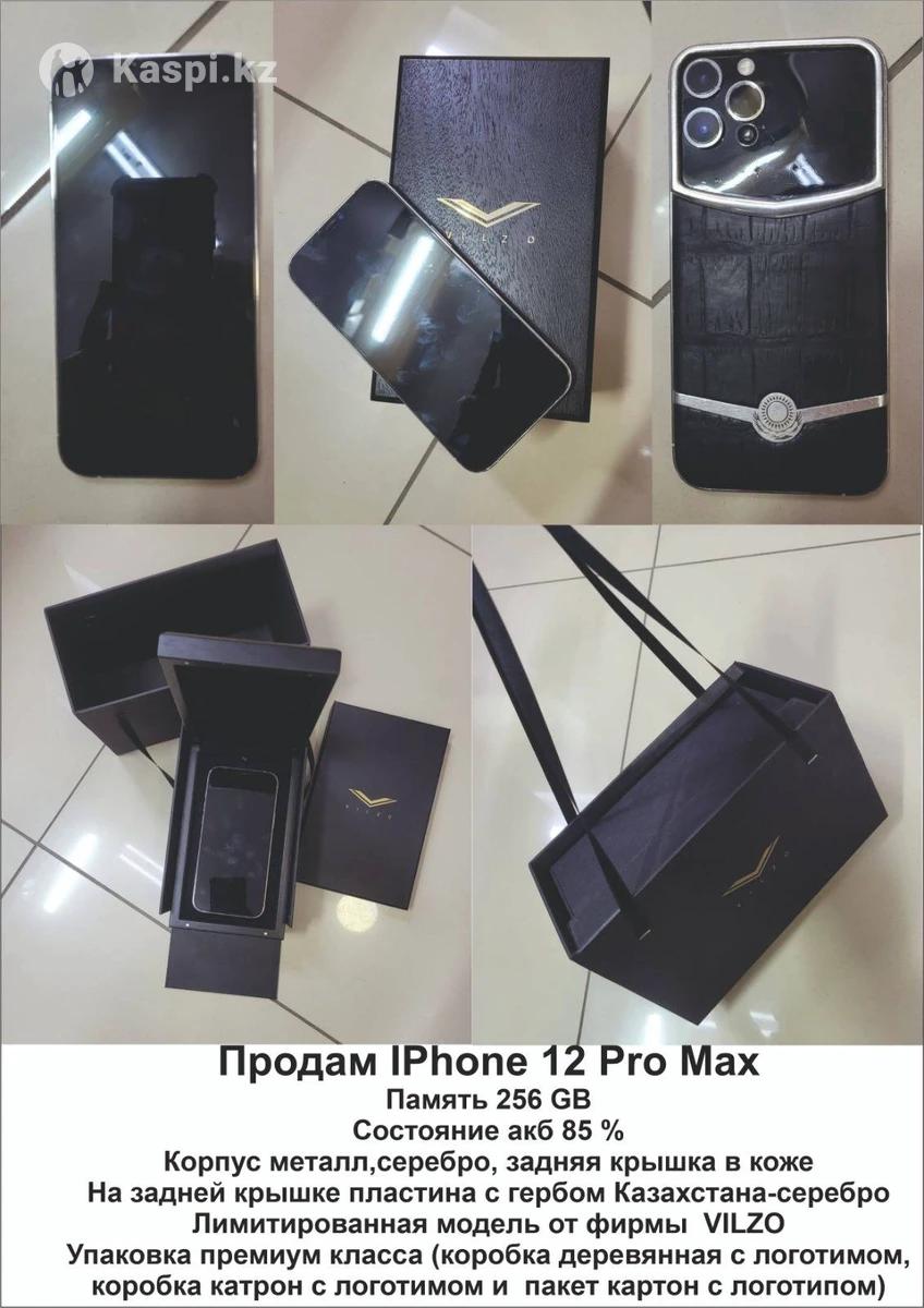 Продам IPhone 12 Pro Max 256 GB в идеальном состоянии. Состояние АКБ 85 % Корпус металл, серебро, задняя крышка в коже. На задней крышке пластина с гербом Казахстана-серебро. Лимитированная модель от фирмы VILZO. Упаковка премиум класса (коробка деревянная с логотипом , коробка -картон с логотипом и пакет -картон с логотипом) Имеется защитное стекло (гидрогель).