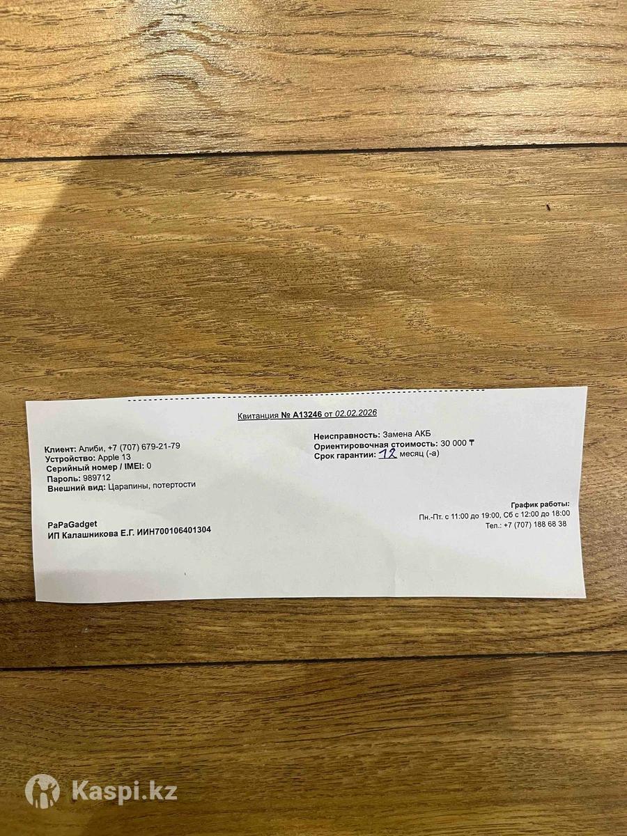 iPhone 13 в хорошем состоянии. Недавно поменяли батарею, гарантия на батарею 1 год. Память 128 ГБ. Все документы есть