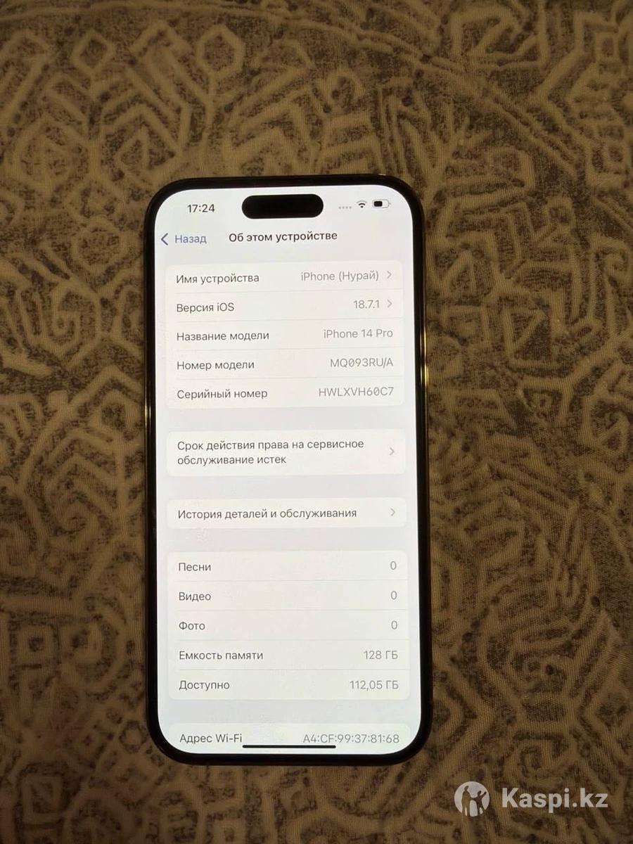 Продам iPhone 14 Pro, 128 GB Телефон в идеальном состоянии. Аккумулятор — 79%. Экран родной, ничего не менялось, все в оригинале. Работает отлично, без нареканий. Внешнее состояние аккуратное, без дефектов.