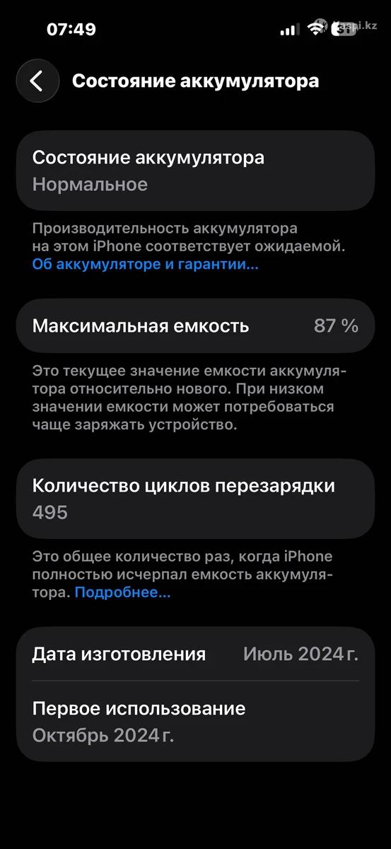 Продам IPhone 15 128gb черный 87% батарея Работает хорошо Состояние 9/10 Есть пару царапин на экране( не видно при использование) Есть коробка и оригинальная зарядка Торг уместен