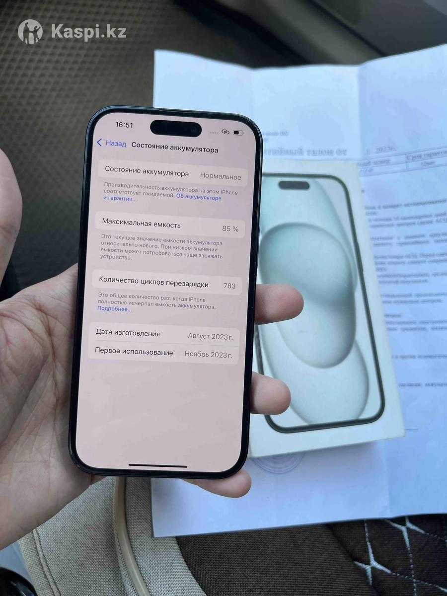 Продам iPhone 15 Состояние хорошее В ремонте не был Ёмкость 85% Полный комплект Без минусов Возможно обмен на телефон / ноутбук / ПК / приставку